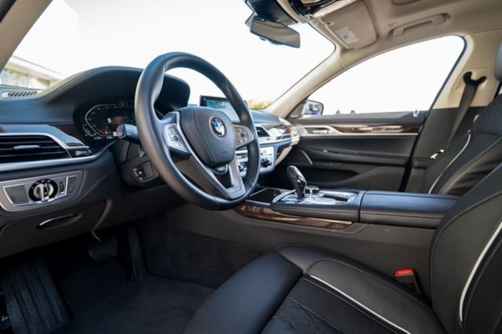 Connected Package Pro, Driving Assistance Professional Package (Active Driving Assistant Delete, Active Driving Assistant Pro, and Extended Traffic Jam Assistant), Executive Package (Ceramic Controls, Front Massaging Seats, Front Ventilated Seats, Instrument Panel w/Nappa Leather Finish, Panoramic Moonroof Delete, Panoramic Sky Lounge LED Roof, and Power Rear Sunshade & Rear Side Window Shades), 750i xDrive, BMW Certified Pre-Owned Certified, 4D Sedan, 4.4L V8 32V Twin Turbocharged, AWD, Cashmere Silver Metallic, Black Leather, 16 Speakers, 4-Wheel Disc Brakes, ABS brakes, Adaptive suspension, Air Conditioning, Alloy wheels, AM/FM radio: SiriusXM, Anti-whiplash front head restraints, Apple CarPlay & Android Auto Compatibility, Auto High-beam Headlights, Auto tilt-away steering wheel, Auto-dimming door mirrors, Auto-dimming Rear-View mirror, Auto-leveling suspension, Automatic temperature control, Brake assist, Bumpers: body-color, ConnectedDrive Services, Delay-off headlights, Door auto-latch, Drive Recorder, Driver door bin, Driver vanity mirror, Dual front impact airbags, Dual front side impact airbags, Electronic Stability Control, Emergency communication system: BMW Assist eCall, Fine Wood American Dark Oak Trim w/Metal Inlay, Four wheel independent suspension, Front & Rear Heated Seats, Front anti-roll bar, Front Bucket Seats, Front Center Armrest, Front dual zone A/C, Front reading lights, Fully automatic headlights, Garage door transmitter, Genuine wood console insert, Genuine wood dashboard insert, Genuine wood door panel insert, Gesture Co