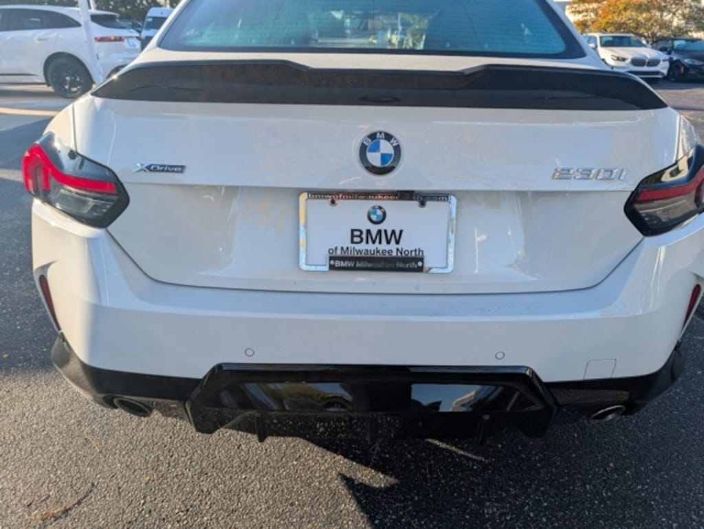 BMW Certified w/Unlimited Mile Warranty, Turn heads on every drive with the 2023 BMW 230i xDrive Coupe in elegant Alpine White paired with a bold Tacora Red interior and striking M Carbon Fiber accents, available now at BMW of Milwaukee North. This exhilarating luxury coupe combines the precision of BMWâs intelligent xDrive all-wheel-drive system with a powerful 2.0L TwinPower Turbo engine, delivering both dynamic performance and confident handling on Milwaukee roads. Inside, the sporty M Carbon Fiber trim elevates the cockpit, complementing the richly appointed Tacora Red leather for a truly race-inspired feel. With aggressive styling, cutting-edge technology, and signature M design elements, this 2023 BMW 230i xDrive is engineered to thrill. Visit BMW of Milwaukee North today to explore this unique blend of style and performance in Milwaukee, Wisconsin., 2 Series 230i xDrive, 2D Coupe, 2.0L I4 16V TwinPower Turbo, AWD, Alpine White, Tacora Red Leather, Active Park Distance Control, Adaptive Full LED Lights, Aerodynamic Kit, Ambient Lighting, Automatic High Beams, Black High Gloss Trim, Comfort Access Keyless Entry, Heated Front Seats, Heated Steering Wheel, Illuminated M Trim (DISC), Live Cockpit Pro, M Sport Package (DISC), M Sport Pkg, M Sport Suspension, M Steering Wheel, Moonroof, Parking Assistance Package, Parking Assistant Plus, Premium Package, Rear Spoiler, Rear-View Camera, Shadowline Exterior Trim, Surround View w/3D View, Universal Garage-Door Opener, Variable Sport Steering, Wheels: 18" x 7.5" M Double-Spoke (Style 848M), Without Lines Designation Outside. Odometer is 12474 miles below market average!