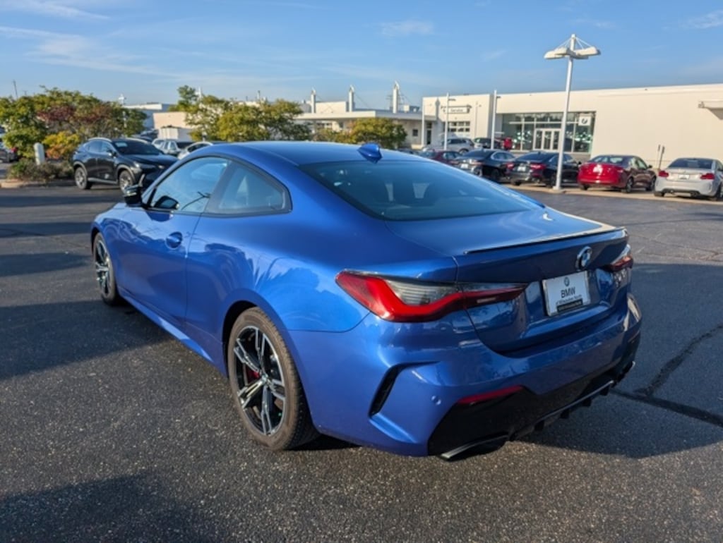 Connected Package Pro, M Sport Package Pro, Premium Package (Head-Up Display, Heated Front Seats, Heated Steering Wheel, and Live Cockpit Pro w/Navi), Shadowline Package (Black Mirror Caps, Extended Shadowline Trim, M Shadowline Lights, and M Sport Brakes w/Red Calipers), 4 Series M440i xDrive, BMW Certified Pre-Owned Certified, 2D Coupe, 3.0L I6, AWD, Portimao Blue Metallic, Black W/Blue Stitching Leather, 10 Speakers, 4-Wheel Disc Brakes, ABS brakes, Adaptive M Suspension, Air Conditioning, Alloy wheels, AM/FM Radio, AM/FM radio: SiriusXM, Apple CarPlay & Android Auto Compatibility, Auto High-beam Headlights, Auto-dimming door mirrors, Auto-dimming Rear-View mirror, Automatic temperature control, BMW Assist eCall, BMW TeleServices, Brake assist, Bumpers: body-color, Compass, ConnectedDrive Services, Delay-off headlights, Driver door bin, Driver Lumbar Support, Driver vanity mirror, Dual front impact airbags, Dual front side impact airbags, Electronic Stability Control, Emergency communication system: BMW Assist eCall, Enhanced USB & Bluetooth w/Smartphone Integration, Exterior Parking Camera Rear, Four wheel independent suspension, Front anti-roll bar, Front Bucket Seats, Front Center Armrest, Front dual zone A/C, Front reading lights, Fully automatic headlights, Garage door transmitter, harman/kardon Surround Sound System, Heated door mirrors, Hi-Fi Sound System, Illuminated entry, Knee airbag, Low tire pressure warning, Memory seat, Navigation, Navigation System, Occupant sensing airbag, Open Pore Fine Wood Oak Grain Trim, Outside temperature display, Overhead airbag, Overhead console, Panic alarm, Passenger door bin, Passenger vanity mir