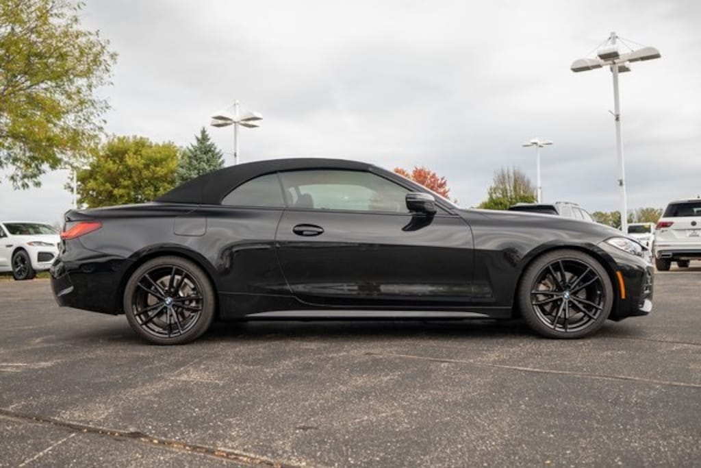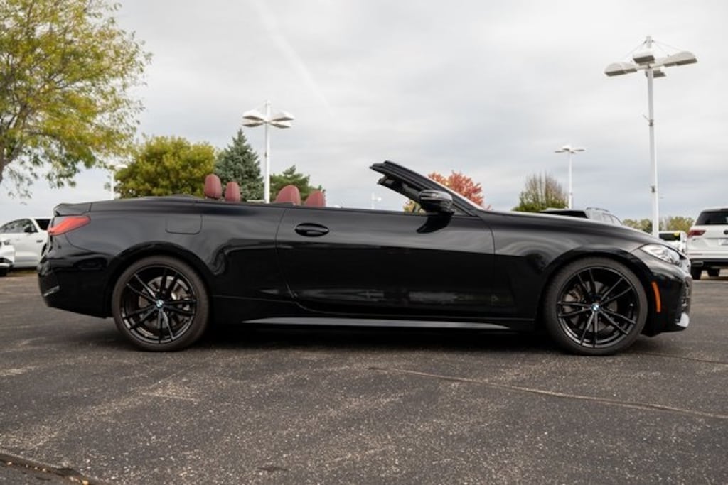 BMW Certified w/Unlimited Mile Warranty, Turn heads in every season with the 2023 BMW 430i Convertible, featuring a striking Black Sapphire Metallic exterior paired with a bold Tacora Red interior, available now at BMW of Milwaukee North. This open-top luxury sport coupe delivers dynamic performance with its turbocharged engine, precision handling, and iconic BMW design. Perfect for cruising the streets of Milwaukee, Wisconsin, the 430i Convertible offers a seamless blend of top-down freedom and year-round comfort, thanks to its advanced climate features and cutting-edge technology. Visit BMW of Milwaukee North to experience this exhilarating convertible and drive home in a true expression of style and performance., 430i, 2D Convertible, 2.0L 4-Cylinder TwinPower Turbo, Black Sapphire Metallic, Aerodynamic Kit, Comfort Access Keyless Entry, Connected Package Pro, Driver Lumbar Support, Heated Front Seats, Heated Steering Wheel, Live Cockpit Pro w/Navi, M Sport Package, M Sport Package (337), M Sport Suspension, M Steering Wheel, Premium Package, Shadowline Exterior Trim, Variable Sport Steering, Wheels: 19" x 8" Fr & 19" x 8.5" Rr M Double-Spoke, Without Lines Designation Outside. Odometer is 4746 miles below market average!