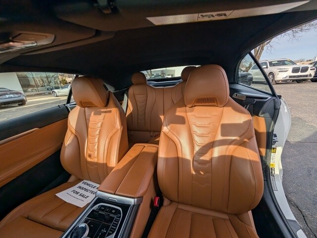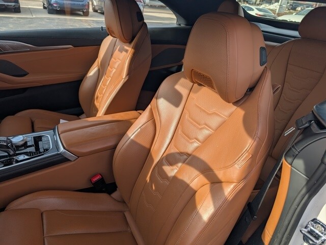 8 Series 840i, BMW Certified Pre-Owned Certified, 2D Convertible, 3.0L I6 DOHC 24V TwinPower Turbo, AWD, Alpine White, Cognac Cognac Extended Merino Leathe, 16 Speakers, 4-Wheel Disc Brakes, ABS brakes, Active Blind Spot Detection, Active Driving Assistant, Active Park Distance Control, Air Conditioning, Alloy wheels, AM/FM radio: SiriusXM, Apple CarPlay & Android Auto Compatibility, Ash Grain Grey-Metallic Wood Trim, Auto High-beam Headlights, Auto tilt-away steering wheel, Auto-dimming door mirrors, Auto-dimming Rear-View mirror, Automatic temperature control, BMW Assist eCall, BMW TeleServices, Brake assist, Bumpers: body-color, Convertible roof lining, Convertible roof wind blocker, Delay-off headlights, Door auto-latch, Driver door bin, Driver vanity mirror, Dual front impact airbags, Dual front side impact airbags, Electronic Stability Control, Emergency communication system: BMW Assist eCall, Enhanced USB & Bluetooth Plus Smartphone Integration, Extended Merino Leather Upholstery, Exterior Parking Camera Rear, Four wheel independent suspension, Front anti-roll bar, Front Bucket Seats, Front Center Armrest, Front dual zone A/C, Front reading lights, Front Ventilated Seats, Fully automatic headlights, Garage door transmitter, Glass Controls, Glass rear window, harman/kardon Surround Sound System, harman/kardon® Speakers, Heads-Up Display, Heated door mirrors, Heated front seats, Heated Front Seats, Armrests & Steering Wheel, Heated steering wheel, Illuminated entry, Integrated roll-over protection, Leather Shift Knob, Leather steering wheel, Live Cockpit Pro w/Navi, Low tire pressure warning, Memory seat, Moonlight Black SoftTop, Multi-Functional Seats, Navigation System, Neck Warmer, Occupant sensing airbag, Outside temperature display, Panic alarm, Parking Assistant Plus, Passenger door bin, Passenger vanity mirror, Power convertible roof, Power