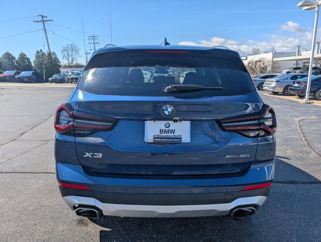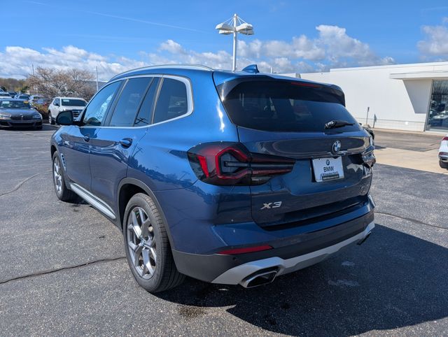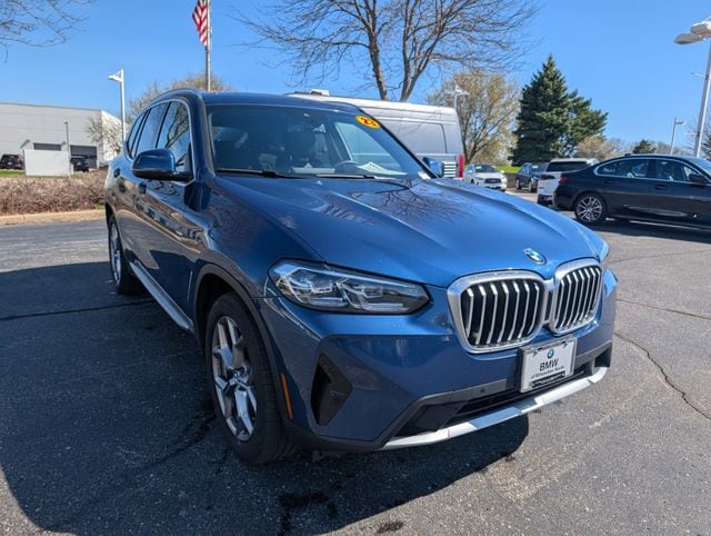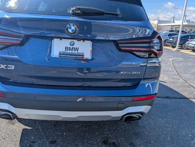 BMW Certified w/Unlimited Mile Warranty, Brand New Tires, Call us today to schedule your test drive at 414-312-4242, This 2023 BMW X3 represents an opportunity to own a precisely engineered luxury SUV without compromise. Finished in Phytonic Blue Metallic, a sophisticated hue that shifts subtly across the spectrum, this certified pre-owned model arrives at BMW of Milwaukee North in impeccable condition. The matching blue interior completes a refined aesthetic that elevates every journey, whether navigating Milwaukee's streets or venturing beyond the city limits. The X3 delivers the responsive handling BMW is known for, with a chassis tuned to balance comfort and agility in equal measure. Behind the wheel, you'll experience intuitive controls and a serene cabin insulated from road noise, while the interior design employs quality materials and thoughtful ergonomics throughout. The infotainment system responds quickly to your inputs, and the spacious cargo area adapts effortlessly to your lifestyle, whether you're transporting equipment or simply enjoying the flexibility that comes with this class of vehicle. BMW of Milwaukee North backs this vehicle with comprehensive CPO certification, providing five years of total coverage from the original in-service date—four years of factory warranty plus an additional year of CPO protection. This assurance reflects BMW's confidence in both the vehicle's engineering and the meticulous inspection it has undergone. We invite you to experience this X3 firsthand at our dealership, where our team is prepared to discuss its history, features, and financing options that suit your needs. Call us today to schedule your test drive at 414-312-4242, X3 xDrive30i, 4D Sport Utility, 2.0L I4 TwinPower Turbo, 8-Speed Automatic Sport, AWD, Phytonic Blue Metallic, Black Premium Synthetic, Connected Package Pro, Convenience Package, Driver Lumbar Support, Panoramic Moonroof. Odometer is 8121 miles below market average! Priced below KBB Fair Purchase Price!