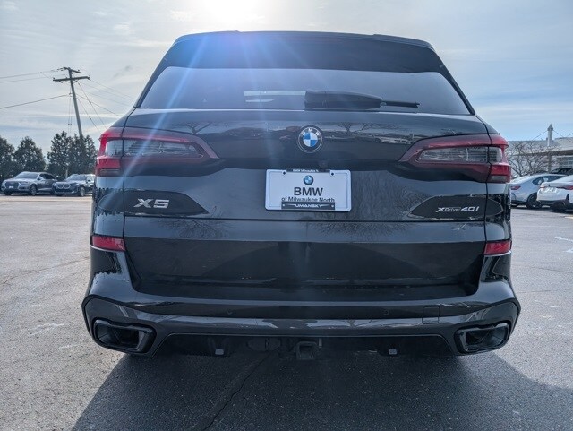 Experience exhilarating performance and refined luxury in this 2023 BMW X5 M Sport, finished in sleek Black Sapphire Metallic with a sophisticated black interior, available now at BMW of Milwaukee North in Milwaukee, Wisconsin. This dynamic BMW Certified Pre-Owned (CPO) luxury SUV combines aggressive M Sport styling, powerful performance, and advanced BMW technology for an unmatched driving experience. Enjoy the confidence of the BMW CPO warranty, including extended coverage, a comprehensive multi-point inspection, and 24/7 roadside assistance. The 2023 BMW X5 M Sport features a bold athletic design, premium interior materials, cutting-edge infotainment, and legendary BMW handling, making it a top choice among luxury SUVs in the Milwaukee area. Visit BMW of Milwaukee North today and elevate your drive with this exceptional BMW X5 M Sport., X5 xDrive40i, 4D Sport Utility, 3.0L I6 DOHC 24V TwinPower Turbo, AWD, Black Sapphire Metallic, Black Black Sensafin, 4-Zone Automatic Climate Control, Active Park Distance Control, Adaptive M Suspension, Aerodynamic Kit, Climate Comfort Package, Connected Package Pro, Drive Recorder, Front & Rear Heated Seats, Head-Up Display, Heated Front Seats w/Armrests & Steering Wheel, High-Gloss Shadowline Roof Rails, M Sport Package, M Sport Package (337), M Steering Wheel, Parking Assistance Package, Parking Assistant Plus, Premium Package, Rear-View Camera, Remote Engine Start, Shadowline Exterior Trim, Surround View w/3D View, Wheels: 20" x 9" M Star-Spoke Bi-Color, Wireless Charging, Without Lines Designation Outside. Odometer is 4368 miles below market average! Priced below KBB Fair Purchase Price!