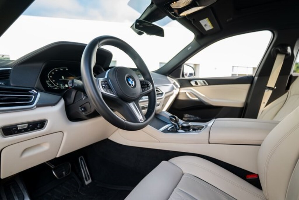 Connected Package Pro, M Sport Package (Adaptive M Suspension, Aerodynamic Kit, M Sport Exhaust System, M Steering Wheel, Shadowline Exterior Trim, Wheels: 20" x 9" M Star-Spoke Bi-Color (Style 740M), and Without Lines Designation Outside), M Sport Package (337), Parking Assistance Package (DISC) (Active Park Distance Control, Drive Recorder, Parking Assistant Plus, Rear-View Camera, and Surround View w/3D View), Premium Package (Head-Up Display, Remote Engine Start, WiFi Hotspot, and Wireless Charging), X6 xDrive40i, BMW Certified Pre-Owned Certified, 4D Sport Utility, 3.0L I6 DOHC 24V, AWD, Alpine White, Ivory White Leather, 10 Speakers, 3.39 Axle Ratio, 4-Wheel Disc Brakes, 4-Zone Automatic Climate Control, ABS brakes, Air Conditioning, Alloy wheels, AM/FM radio: SiriusXM with 360L, AM/FM Stereo, Apple CarPlay & Android Auto Compatibility, Auto High-beam Headlights, Auto-dimming door mirrors, Auto-dimming Rear-View mirror, Automatic temperature control, BMW Assist eCall, BMW TeleServices, Brake assist, Bumpers: body-color, Compass, ConnectedDrive Services, Delay-off headlights, Driver door bin, Driver vanity mirror, Dual front impact airbags, Dual front side impact airbags, Electronic Stability Control, Emergency communication system: BMW Assist eCall, Enhanced USB & Bluetooth Plus Smartphone Integration, Exterior Parking Camera Rear, Four wheel independent suspension, Front anti-roll bar, Front Bucket Seats, Front Center Armrest, Front dual zone A/C, Front reading lights, Fully automatic headlights, Garage door transmitter, Genuine wood conso