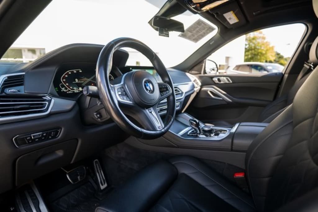 Climate Comfort Package (4-Zone Automatic Climate Control, Front & Rear Heated Seats, and Heated Front Seats Armrests & Steering Wheel), Connected Package Pro, M Sport Package (Adaptive M Suspension, Aerodynamic Kit, M Sport Exhaust System, M Steering Wheel, Shadowline Exterior Trim, Wheels: 20" x 9" M Star-Spoke Bi-Color (Style 740M), and Without Lines Designation Outside), M Sport Package (337), Parking Assistance Package (DISC) (Active Park Distance Control, Drive Recorder, Parking Assistant Plus, Rear-View Camera, and Surround View w/3D View), Premium Package (Head-Up Display, Remote Engine Start, WiFi Hotspot, and Wireless Charging), Shadowline Package (Extended Shadowline Trim and Illuminated Kidney Grille), X6 xDrive40i, BMW Certified Pre-Owned Certified, 4D Sport Utility, 3.0L I6 DOHC 24V, AWD, Black Sapphire Metallic, Black Leather, 10 Speakers, 3.39 Axle Ratio, 4-Wheel Disc Brakes, ABS brakes, Air Conditioning, Alloy wheels, AM/FM radio: SiriusXM with 360L, AM/FM Stereo, Apple CarPlay & Android Auto Compatibility, Auto High-beam Headlights, Auto-dimming door mirrors, Auto-dimming Rear-View mirror, Automatic temperature control, BMW Assist eCall, BMW TeleServices, Brake assist, Bumpers: body-color, Compass, ConnectedDrive Services, Delay-off headlights, Driver door bin, Driver Lumbar Support Only (DISC), Driver vanity mir