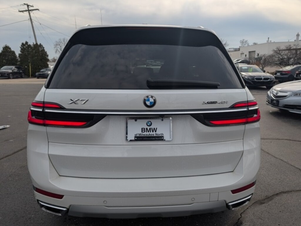 BMW Certified w/Unlimited Mile Warranty, Experience unmatched luxury, power, and sophistication with this 2024 BMW X7 in elegant Mineral White Metallic paired with a rich coffee interior, available now at BMW of Milwaukee North in Milwaukee, Wisconsin. This flagship three-row SUV delivers commanding performance, advanced xDrive all-wheel drive capability, and cutting-edge technology that elevates every drive. Inside, youâll find premium materials, expansive seating, and innovative comfort features designed for families and luxury enthusiasts alike. With its bold design, refined craftsmanship, and smooth, powerful ride, the 2024 X7 is the perfect blend of versatility and elegance for Wisconsin drivers. Discover true BMW luxury with this stunning 2024 BMW X7 at BMW of Milwaukee North., X7 xDrive40i, 4D Sport Utility, 3.0L I6 DOHC 24V, AWD, Mineral White Metallic, Coffee Coffee Sensafin, 5-Zone Automatic Climate Control, Active Cruise Control w/Stop & Go, Active Driving Assistant Pro, Active Lane Keeping Assistant, Climate Comfort Package, Connected Package Pro, Drive Recorder, Driving Assistance Professional Package, Front & Rear Heated Seats, Front Ventilated Seats, Gesture Control, harman/kardon Surround Sound System, Highway Assistant, Parking Assistance Package, Parking Assistant Professional, Premium Package, Rear Electric Side Window Shades, Soft-Close Automatic Doors, Surround View w/3D View, Traffic Jam Assistant.