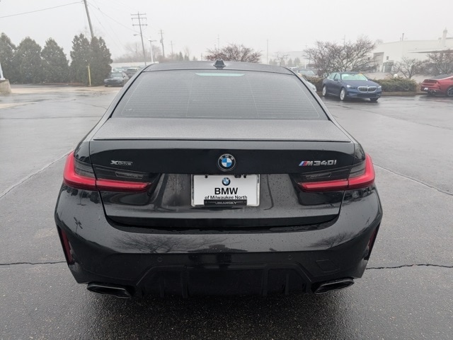 BMW Certified w/Unlimited Mile Warranty, Brand New Tires, Experience thrilling performance and refined luxury with the 2025 BMW M340i xDrive at BMW of Milwaukee North in Milwaukee, Wisconsin. Finished in stunning Black Sapphire Metallic, this sport sedan commands attention with its bold kidney grille, aerodynamic M styling, and aggressive stance, while the vibrant Tacora Red interior delivers a striking contrast of premium Vernasca leather and driver-focused craftsmanship. Powered by a turbocharged 3.0-liter BMW M TwinPower inline-6 engine paired with intelligent xDrive all-wheel drive, the 2025 BMW M340i xDrive offers exhilarating acceleration, precise handling, and confident year-round performance perfect for Wisconsin roads. Advanced technology features including BMW Curved Display with iDrive 8.5, wireless Apple CarPlay® and Android AutoTM, premium driver-assistance systems, and Harman Kardon® surround sound create a connected, first-class driving experience. If you’re searching for a luxury sports sedan for sale in Milwaukee, WI, the 2025 BMW M340i xDrive in Black Sapphire Metallic with Tacora Red interior at BMW of Milwaukee North delivers unmatched style, power, and everyday practicality., 3 Series M340i xDrive, 4D Sedan, 3.0L I6, AWD, Black Sapphire Metallic, Tacora Red Premium Synthetic, Active Driving Assistant Pro, Active Park Distance Control, BMW Curved Display w/HUD, Connected Package Pro, Driving Assistance Professional Package, Extended Shadowline Trim, Extended Traffic Jam Assistant, Full LED Headlights w/Cornering Lights, harman/kardon Surround Sound System, M Shadowline Lights, M Sport Package Pro, Parking Assistance Package, Parking Assistant Plus, Power Tailgate, Premium Package, Rear-View Camera, Shadowline Package, Surround View w/3D View. Priced below KBB Fair Purchase Price!