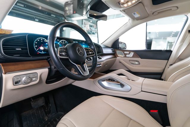 Mercedes-Benz Certified Pre-Owned Certified, 5-Zone Climate Control, 7-Seat Configuration, Adaptive suspension, Apple CarPlay®/Android Auto®, Auto-leveling suspension, Brake assist, Heated & Cooled Front Cup Holders, Heated front seats, Panorama Sliding Sunroof, Roof Spoiler, Trailer Hitch, Ventilated front seats, Wheels: 21" Triple 5-Spoke, 13 Speakers, 3.27 Axle Ratio, 3rd row seats: split-bench, 4-Wheel Disc Brakes, ABS brakes, Active Brake Assist w/Cross-Traffic Function, Air Conditioning, Alloy wheels, AM/FM radio: SiriusXM, Auto High-beam Headlights, Auto tilt-away steering wheel, Auto-dimming door mirrors, Auto-dimming Rear-View mirror, Automatic temperature control, Bumpers: body-color, Child-Seat-Sensing Airbag, Compass, Delay-off headlights, Driver door bin, Driver vanity mirror, Dual front impact airbags, Dual front side impact airbags, Electronic Stability Control, Emergency communication system: eCall Emergency System, Four wheel independent suspension, Front anti-roll bar, Front Bucket Seats, Front Center Armrest w/Storage, Front dual zone A/C, Front reading lights, Fully automatic headlights, Garage door transmitter: HomeLink, Genuine wood console insert, Genuine wood dashboard insert, Genuine wood door panel insert, Head restraints memory, Heated and Ventilated Power Front Seats w/Memory, Heated door mirrors, Illuminated entry, Knee airbag, Low tire pressure warning, MB-Tex Upholstery, Memory seat, Navigation system: MB Navigation, Occupant sensing airbag, Outside temperature display, Overhead airbag, Overhead console, Panic alarm, Passenger door bin, Passenger vanity mirror, Power adjustable front head restraints, Power door mirrors, Power driver seat, Power Liftgate, Power moonroof, Power passenger seat, Power steering, Power windows, Premium audio system: MBUX, Radio: MBUX Multimedia System, Rain sensing wipers, Rear air conditioning, Rear anti-roll bar, Rear dual zone A/C, Rear fog lights, Rear reading lights, Rear seat center armrest, Rear window defroster, Rear window wiper, Remote keyless entry, Roof rack: rails only, Security sy