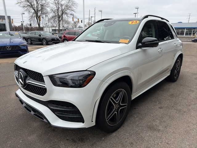 -Certified Pre-Owned - Unlimited Mileage Warranty, -Clean Carfax - One Owner, -Dealer Maintained, -Well Maintained, Discover luxury, performance, and confidence in this **2023 Certified Pre-Owned Mercedes-Benz GLE 350 4MATIC** available now at **Mercedes-Benz of Milwaukee North in Milwaukee, WI**. Finished in a striking **Polar White exterior** with an elegant **Beige leather interior**, this premium midsize SUV delivers timeless style and all-weather capability with Mercedes-Benz 4MATIC® all-wheel drive. The **AMG Line Package** adds a sporty edge with aggressive exterior styling and performance-inspired design, while the **Premium Package** enhances everyday driving with advanced technology, intuitive infotainment, and driver-focused conveniences. Enjoy elevated comfort in colder Wisconsin weather thanks to the **Warmth and Comfort Package**, and turn heads day or night with the **Exterior Lighting Package**, providing enhanced visibility and signature Mercedes-Benz illumination. As a **Certified Pre-Owned Mercedes-Benz**, this GLE 350 offers added peace of mind with a thorough inspection and extended warranty coverage, making it an exceptional luxury SUV choice for drivers seeking performance, refinement, and value in the Milwaukee area., 115V Power Outlet, AMG® Bodystyling, AMG® Line Exterior, Apple CarPlay®/Android Auto®, Brake assist, Burmester® Surround Sound, Exterior Lighting Package, Head-Up Display, Heated & Cooled Cup Holders, Heated Armrest, Heated front seats, Heated Rear Seats, Heated Steering Wheel, LED Intelligent Light System, Night Package, Panorama Power Tilt/Sliding Sunroof, Parking Assist Code, Premium Package, Rapid Heating Functionality for Front Seats, Roof Spoiler, Ventilated Front Seats, Warmth & Comfort Package, Wheels: 20" AMG® 5-Spoke w/Black Accents.
