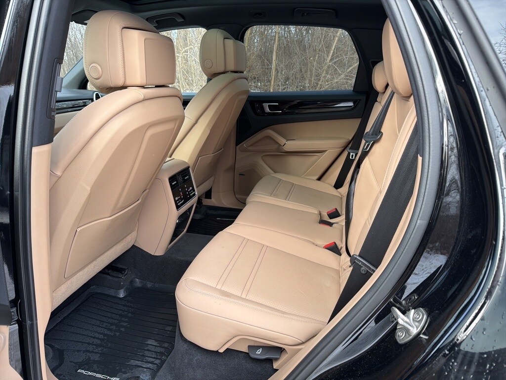 Black Leather, 10 Speakers, 4-Wheel Disc Brakes, 8-Way Power Seats, ABS brakes, Adaptive suspension, Air Conditioning, Alloy wheels, AM/FM radio: SiriusXM, Apple CarPlay, Automatic temperature control, Axle Ratio: 3.48, Brake assist, Bumpers: body-color, Delay-off headlights, Driver door bin, Driver vanity mirror, Dual front impact airbags, Dual front side impact airbags, Electronic Stability Control, Exterior Parking Camera Rear, Four wheel independent suspension, Front anti-roll bar, Front Bucket Seats, Front Center Armrest, Front dual zone A/C, Front reading lights, Fully automatic headlights, Garage door transmitter: HomeLink, Heated door mirrors, Illuminated entry, Knee airbag, Leather Shift Knob, Low tire pressure warning, Navigation System, Occupant sensing airbag, Outside temperature display, Overhead airbag, Overhead console, Panic alarm, Partial Leather Seat Trim, Passenger door bin, Passenger vanity mirror, Porsche Communication Management, Power door mirrors, Power driver seat, Power Liftgate, Power passenger seat, Power steering, Power windows, Radio data system, Rain sensing wipers, Rear anti-roll bar, Rear fog lights, Rear reading lights, Rear seat center armrest, Rear side impact airbag, Rear window defroster, Rear window wiper, Remote keyless entry, Security system, Speed control, Split folding rear seat, Spoiler, Steering wheel mounted audio controls, Tachometer, Telescoping steering wheel, Tilt steering wheel, Traction control, Trip computer, Turn signal indicator mirrors, Variably intermittent wipers, Voltmeter, and Wheels: 19" Cayenne.