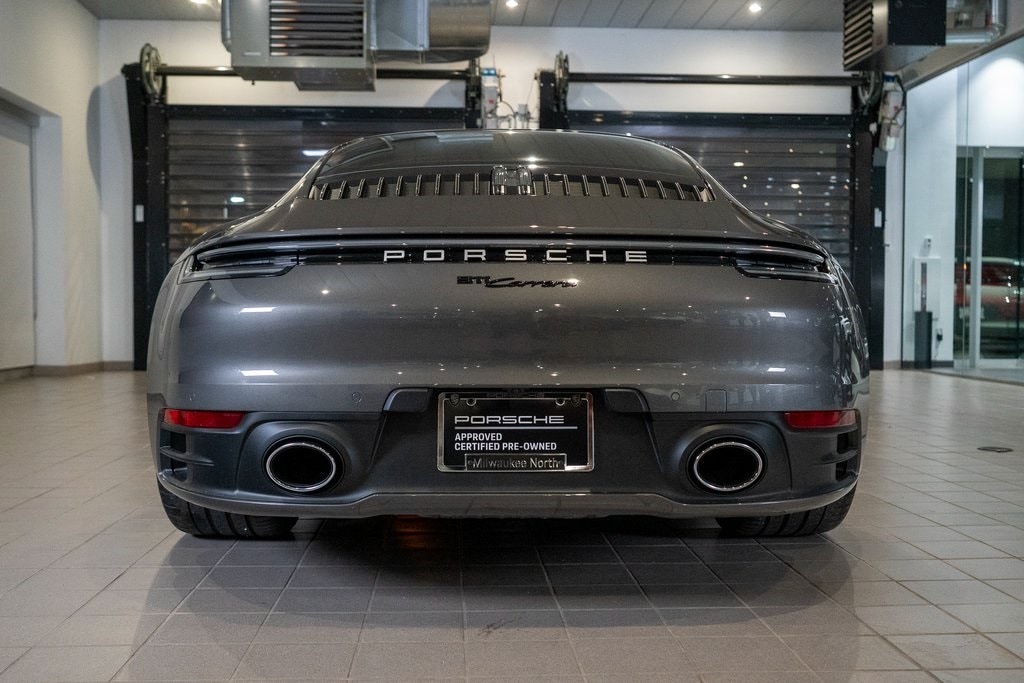 14-Way Power Sport Seats w/Memory Package, Premium Package (Ambient Lighting, BOSE Surround Sound System, Front Ventilated Seats, Lane Change Assist (LCA), Porsche Dynamic Light System Plus (PDLS+), Power Folding Exterior Mirrors, and Surround View), Sound Package Plus, Sport Chrono Package, Storage Package, Porsche Approved Certified Pre-Owned Certified, Brake assist, Electric Slide/Tilt Glass Sunroof, Extended Range 23.7 Gallon Fuel Tank, Heated front seats, Heated Steering Wheel, Power Steering Plus, Sport Exhaust System w/Tailpipes in Silver, Wheels: 20" Fr/21" Rr Carrera Exclusive Design, 4-Wheel Disc Brakes, 8 Speakers, ABS brakes, Adaptive suspension, Air Conditioning, Alloy wheels, Auto-dimming door mirrors, Auto-dimming Rear-View mirror, Automatic temperature control, Bumpers: body-color, Delay-off headlights, Driver door bin, Driver vanity mirror, Dual front impact airbags, Dual front side impact airbags, Electronic Stability Control, Exterior Parking Camera Rear, Four wheel independent suspension, Front anti-roll bar, Front Bucket Seats, Front Center Armrest, Front dual zone A/C, Front reading lights, Fully automatic headlights, Garage door transmitter: HomeLink, Heated door mirrors, Illuminated entry, Leather Seat Trim, Leather