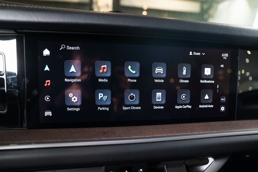Premium Package Plus (4-Zone Climate Control, Adaptive Cruise Control w/Lane Keep Assist (LKA), Front Ventilated Seats, Panoramic Roof System, and Rear Heated Seats), Sport Chrono Package, SportDesign Package, Porsche Approved Certified Pre-Owned Certified, Black Leather, 18-Way Adaptive Sport Seats Plus w/Comfort Memory, Apple CarPlay & Android Auto, Brake assist, Heated front seats, Heated GT Sport Steering Wheel in Leather, Heated steering wheel, Heated Windshield, Illuminated entry, Interior Trim in Eucalyptus, Power Liftgate, 14 Speakers, 4-Wheel Disc Brakes, ABS brakes, Adaptive suspension, Air Conditioning, Alloy wheels, AM/FM radio: SiriusXM w/360L, Audio memory, Auto High-beam Headlights, Auto-dimming door mirrors, Auto-dimming Rear-View mirror, Auto-leveling suspension, Automatic temperature control, Bumpers: body-color, Compass, Delay-off headlights, Driver door bin, Driver vanity mirror, Dual front impact airbags, Dual front side impact airbags, Electronic Stability Control, Exterior Parking Camera Rear, Four wheel independent suspension, Front anti-roll bar, Front Bucket Seats, Front Center Armrest, Front dual zone A/C, Front reading lights, Fully automatic headlights, Garage door transmitter: HomeLink, Heated door mirrors, HVAC memory, Knee airbag, Leather/Race-Tex Seat Trim, Low tire pressure warning, Memory seat, Navigation