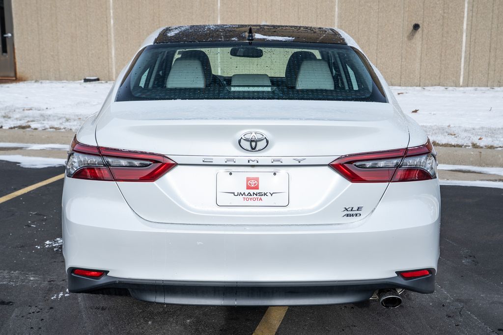 Certified. Wind Chill Pearl 2023 Toyota Camry XLE 4D Sedan AWD 8-Speed Automatic 2.5L I4 DOHC 16V 25/34 City/Highway MPG