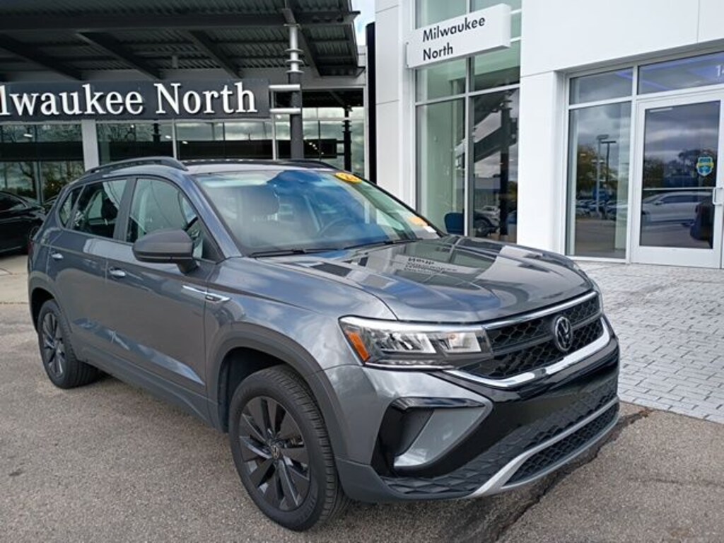 - Discover the perfect blend of style performance and peace of mind with this Volkswagen Certified 2023 Volkswagen Taos 1.5T featuring a sleek Platinum Gray Metallic exterior and a refined Gray/Black interior now available at Volkswagen of Milwaukee North. Equipped with the desirable S Package this compact SUV offers advanced safety features modern tech and impressive fuel efficiencyâmaking it ideal for both city commutes and weekend adventures in Milwaukee Wisconsin. Backed by a comprehensive Volkswagen Certified Pre-Owned warranty you can drive confidently knowing your Taos has passed a rigorous 100+ point inspection. Experience the exceptional value and performance of this 2023 Volkswagen Taos 1.5T today at Volkswagen of Milwaukee Northâyour trusted destination for quality VW vehicles in the greater Milwaukee area.