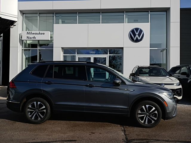 Volkswagen Certified with at least 2 years or 24,000 miles (whichever comes first) of warranty!, Clean Carfax, Dealer Maintained, Local Trade, Discover exceptional value and confidence with this Volkswagen Certified 2023 Volkswagen Tiguan 2.0T S with S Package, available now at Volkswagen of Milwaukee North in Milwaukee, Wisconsin. Finished in sleek Platinum Gray Metallic with a refined Titan Black cloth interior, this versatile compact SUV is powered by a responsive 2.0L turbocharged engine paired with an 8-speed automatic transmission and 4MOTION® all-wheel drive, delivering confident performance in all Wisconsin weather conditions. The Tiguan offers impressive 25 MPG combined fuel economy, advanced IQ.DRIVE® safety and driver assistance features, a Digital Cockpit, Apple CarPlay® and Android AutoTM, heated front seats, blind spot monitoring, adaptive cruise control, and a spacious, flexible interior ideal for families or commuters alike. As a Volkswagen Certified Pre-Owned vehicle, it includes a thorough inspection and added peace of mind, making it a smart choice for drivers seeking reliability, efficiency, and modern technology. Visit Volkswagen of Milwaukee North today to experience this Certified 2023 VW Tiguan 2.0T S Package firsthand., AWD.