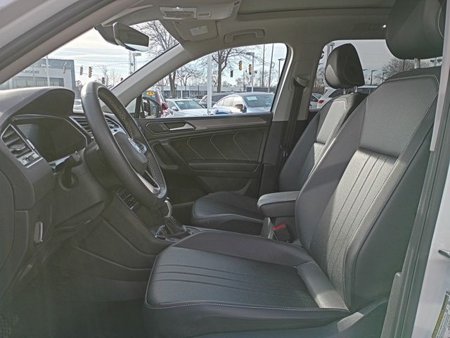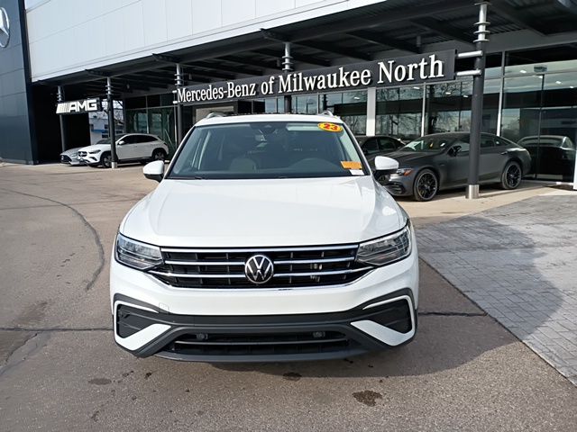 Volkswagen Certified with at least 2 years or 24,000 miles (whichever comes first) of warranty!, Clean Carfax, Dealer Maintained, Local Trade, Experience confidence, capability, and refined style with this Volkswagen Certified 2023 Volkswagen Tiguan 2.0T SE available at Volkswagen of Milwaukee North in Milwaukee, Wisconsin. Finished in striking Opal White Pearl with a sleek Titan Black leatherette interior, this CPO Tiguan is powered by a responsive 2.0L turbocharged engine paired with an 8-speed automatic transmission and 4MOTION® all-wheel drive, delivering confident performance in all Wisconsin seasons. The SE Package enhances comfort and convenience with features like a power driver’s seat, heated front seats, power sliding panoramic sunroof, remote start, power liftgate, and advanced IQ.DRIVE® driver assistance technologies, including Adaptive Cruise Control, Lane Assist, Blind Spot Monitor, and Front Assist with Autonomous Emergency Braking. With an EPA-estimated 25 MPG combined, spacious interior, and the added peace of mind of Volkswagen’s Certified Pre-Owned warranty, this 2023 Tiguan SE is the perfect compact SUV for drivers seeking efficiency, safety, and premium features near Milwaukee., AWD. Odometer is 7750 miles below market average!
