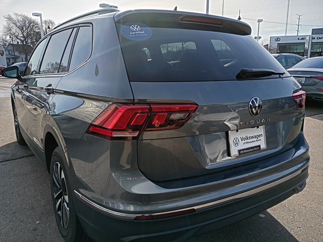Volkswagen Certified with at least 2 years or 24,000 miles (whichever comes first) of warranty!, Clean Carfax, Dealer Maintained, Local Trade, Discover exceptional value and confidence with this Volkswagen Certified 2023 Volkswagen Tiguan 2.0T S with S Package, available now at Volkswagen of Milwaukee North in Milwaukee, Wisconsin. Finished in sleek Platinum Gray Metallic with a refined Titan Black cloth interior, this versatile compact SUV is powered by a responsive 2.0L turbocharged engine paired with an 8-speed automatic transmission and 4MOTION® all-wheel drive, delivering confident performance in all Wisconsin weather conditions. The Tiguan offers impressive 25 MPG combined fuel economy, advanced IQ.DRIVE® safety and driver assistance features, a Digital Cockpit, Apple CarPlay® and Android AutoTM, heated front seats, blind spot monitoring, adaptive cruise control, and a spacious, flexible interior ideal for families or commuters alike. As a Volkswagen Certified Pre-Owned vehicle, it includes a thorough inspection and added peace of mind, making it a smart choice for drivers seeking reliability, efficiency, and modern technology. Visit Volkswagen of Milwaukee North today to experience this Certified 2023 VW Tiguan 2.0T S Package firsthand., AWD.