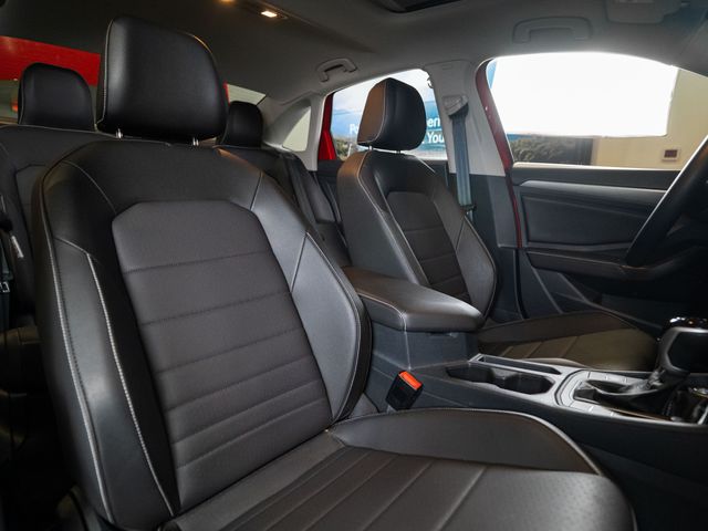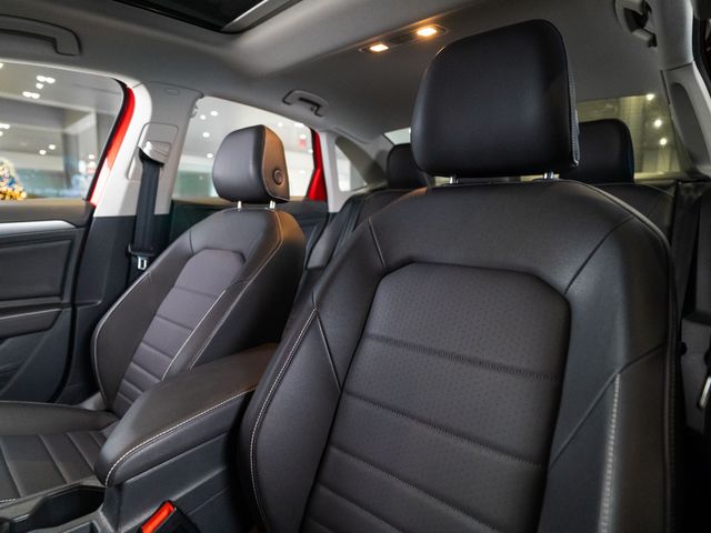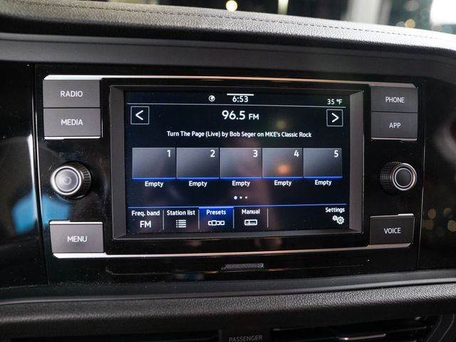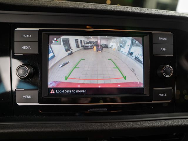 Volkswagen Certified Pre-Owned Certified, Titan Black w/V-Tex Leatherette Seat Trim, 4 Speakers, 4-Wheel Disc Brakes, ABS brakes, Active Blind Spot Monitor, Air Conditioning, Alloy wheels, Auto-dimming Rear-View mirror, Automatic temperature control, Brake assist, Bumpers: body-color, Delay-off headlights, Driver door bin, Driver vanity mirror, Dual front impact airbags, Dual front side impact airbags, Electronic Stability Control, Emergency communication system: VW Car-Net Safe & Secure 5-year, Exterior Parking Camera Rear, Front anti-roll bar, Front Bucket Seats, Front Center Armrest, Front dual zone A/C, Front wheel independent suspension, Fully automatic headlights, Heated door mirrors, Heated Front Seats, Heated Front Seats, Illuminated entry, Leather Shift Knob, Leather steering wheel, Low tire pressure warning, Occupant sensing airbag, Outside temperature display, Overhead airbag, Overhead console, Panic alarm, Passenger door bin, Passenger vanity mirror, Power door mirrors, Power driver seat, Power steering, Power windows, Radio data system, Radio: MIB3 Composition Color w/6.5" Touchscreen, Rain sensing wipers, Rear anti-roll bar, Rear reading lights, Rear seat center armrest, Rear window defroster, Remote Keyless Entry, Speed control, Speed-sensing steering, Split folding rear seat, Steering wheel mounted audio controls, Tachometer, Telescoping steering wheel, Tilt steering wheel, Traction control, Trip computer, V-Tex Leatherette Seat Trim, Variably intermittent wipers, and Wheels: 17" Twin 5-Spoke Silver Painted Alloy.