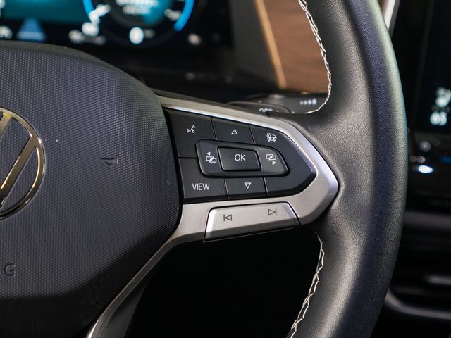 Volkswagen Certified Pre-Owned Certified, 3rd row seats: split-bench, 4-Wheel Disc Brakes, 6 Speakers, ABS brakes, Air Conditioning, Alloy wheels, AM/FM radio: SiriusXM with 360L, Auto High-beam Headlights, Auto-dimming Rear-View mirror, Automatic temperature control, Brake assist, Bumpers: body-color, Compass, Delay-off headlights, Driver door bin, Driver vanity mirror, Dual front impact airbags, Dual front side impact airbags, Electronic Stability Control, Emergency communication system: VW Car-Net Safe & Secure 5-year, Exterior Parking Camera Rear, Four wheel independent suspension, Front anti-roll bar, Front Bucket Seats, Front Center Armrest, Front dual zone A/C, Front fog lights, Front reading lights, Fully automatic headlights, Heated door mirrors, Heated Front Seats, Heated steering wheel, Illuminated entry, Low tire pressure warning, Occupant sensing airbag, Outside temperature display, Overhead airbag, Overhead console, Panic alarm, Passenger door bin, Passenger vanity mirror, Power door mirrors, Power driver seat, Power Liftgate, Power steering, Power windows, Radio data system, Rain sensing wipers, Rear air conditioning, Rear anti-roll bar, Rear reading lights, Rear seat center armrest, Rear window defroster, Rear window wiper, Remote Keyless Entry, Security system, Speed control, Speed-sensing steering, Split folding rear seat, Spoiler, Steering wheel mounted audio controls, Tachometer, Telescoping steering wheel, Tilt steering wheel, Traction control, Trip computer, Turn signal indicator mirrors, Variably intermittent wipers, and Ventilated front seats.