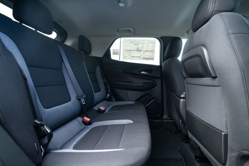 Driver Confidence Package (Rear Cross Traffic Alert and Rear Park Assist), 4-Way Manual Front Passenger Seat Adjuster, 4-Wheel Disc Brakes, 5.45 Final Drive Axle Ratio, 6 Speakers, 6-Way Manual Driver Seat Adjuster, ABS brakes, Air Conditioning, Alloy wheels, AM/FM radio: SiriusXM, Auto High-beam Headlights, Brake assist, Bumpers: body-color, Cloth Seat Trim, Compass, Delay-off headlights, Driver door bin, Driver vanity mirror, Dual front impact airbags, Dual front side impact airbags, Electronic Stability Control, Emergency communication system: OnStar and Chevrolet connected services capable, Enhanced Performance 6-Speaker Audio System, Exterior Parking Camera Rear, Flat-Folding Front Passenger Seatback, Front anti-roll bar, Front Bucket Seats, Front Center Armrest, Front reading lights, Front wheel independent suspension, Fully automatic headlights, Heated door mirrors, Illuminated entry, Knee airbag, Low tire pressure warning, Occupant sensing airbag, Overhead airbag, Overhead console, Panic alarm, Passenger door bin, Passenger vanity mirror, Power door mirrors, Power steering, Power windows, Radio data system, Radio: AM/FM Stereo Audio System, Rear side impact airbag, Rear window defroster, Rear window wiper, Remote keyless entry, Security system, SiriusXM Trial Subscription, Speed control, Split folding rear seat, Spoiler, Steering wheel mounted audio controls, Tachometer, Telescoping steering wheel, Tilt steering wheel, Traction control, Trip computer, Variably intermittent wipers, Wheels: 17 High Gloss Black Machined Aluminum, and Wireless Apple CarPlay/Android Auto.