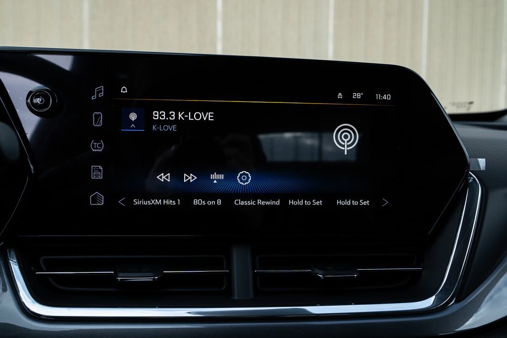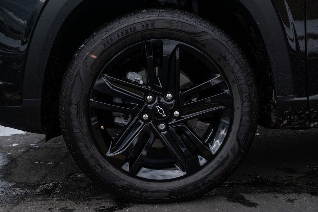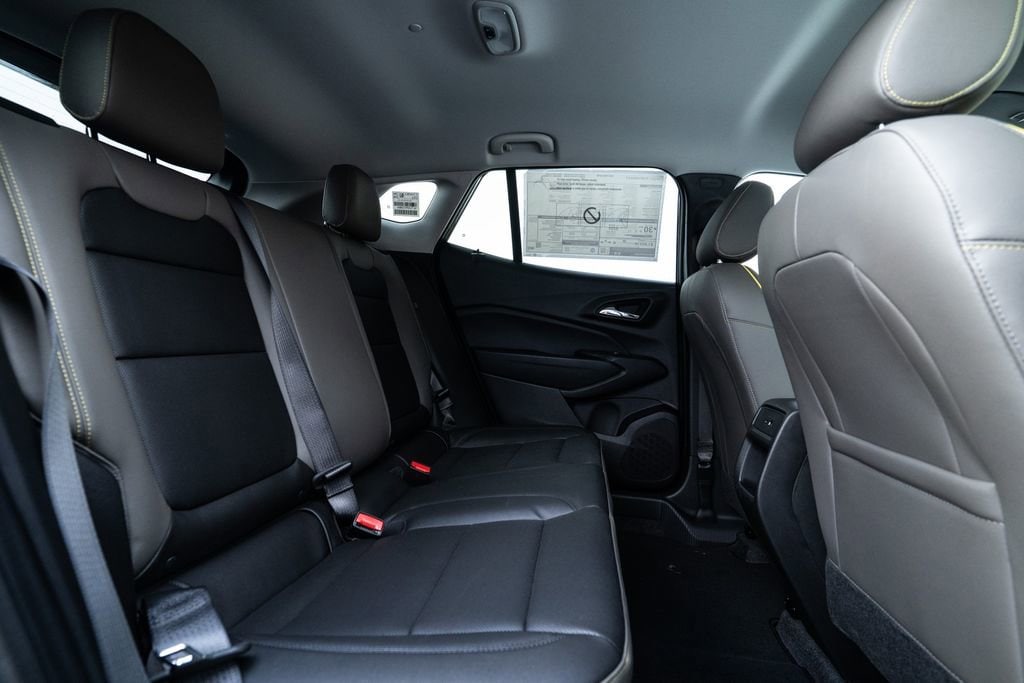 2-Way Adjustable Front Head Restraints, 2-Way Power Driver Lumbar Seat Adjuster, 3.50 Final Drive Axle Ratio, 4-Way Manual Front Passenger Seat Adjuster, 4-Wheel Disc Brakes, 6 Speakers, 6-Speaker Audio System Feature, 8-Way Power Driver Seat Adjuster, ABS brakes, Air Conditioning, Alloy wheels, AM/FM radio: SiriusXM, Auto High-beam Headlights, Automatic temperature control, Brake assist, Bumpers: body-color, Compass, Delay-off headlights, Driver door bin, Driver vanity mirror, Dual front impact airbags, Dual front side impact airbags, Electronic Stability Control, Emergency communication system: OnStar One Essentials, Evotex Seat Trim, Exterior Parking Camera Rear, Front anti-roll bar, Front Bucket Seats, Front Center Armrest, Front reading lights, Front wheel independent suspension, Fully automatic headlights, Heated door mirrors, Heated front seats, Heated steering wheel, Illuminated entry, Leather steering wheel, Low tire pressure warning, Occupant sensing airbag, Outside temperature display, Overhead airbag, Overhead console, Panic alarm, Passenger door bin, Passenger vanity mirror, Power door mirrors, Power driver seat, Power steering, Power windows, Premium audio system: Chevrolet Infotainment 3, Radio data system, Radio: AM/FM Stereo Audio System, Rear window defroster, Rear window wiper, Remote keyless entry, Security system, SiriusXM Trial Subscription, Speed control, Split folding rear seat, Spoiler, Steering wheel mounted audio controls, Tachometer, Telescoping steering wheel, Tilt steering wheel, Traction control, Trip computer, Variably intermittent wipers, Wheels: 18 Black-Painted Aluminum, and Wireless Apple CarPlay/Wireless Android Auto.