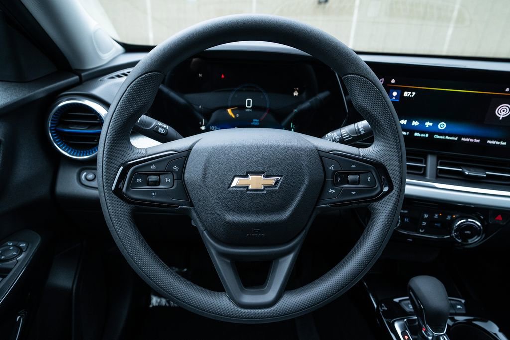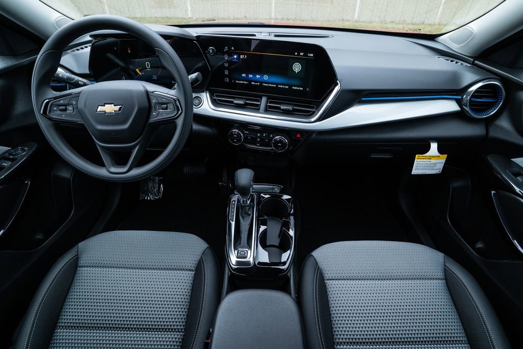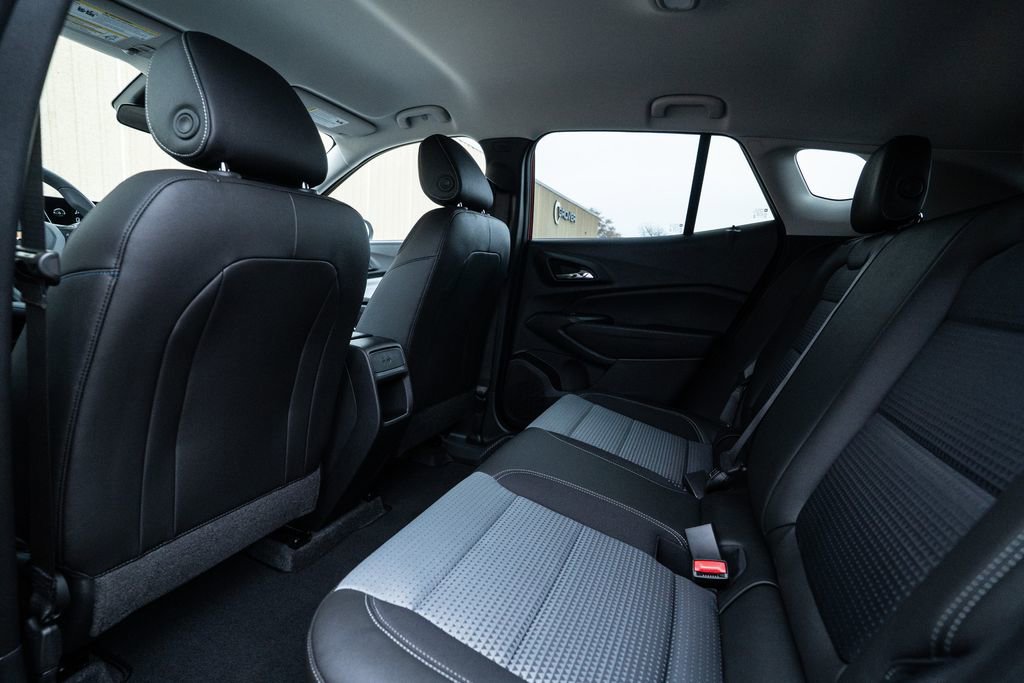 Trax LT, 2-Way Adjustable Front Head Restraints, 3.50 Final Drive Axle Ratio, 4-Way Manual Front Passenger Seat Adjuster, 4-Wheel Disc Brakes, 6 Speakers, 6-Speaker Audio System Feature, 6-Way Manual Driver Seat Adjuster, ABS brakes, Air Conditioning, Alloy wheels, AM/FM radio: SiriusXM, Auto High-beam Headlights, Automatic temperature control, Brake assist, Bumpers: body-color, Cloth/Evotex Seat Trim, Compass, Delay-off headlights, Driver door bin, Driver vanity mirror, Dual front impact airbags, Dual front side impact airbags, Electronic Stability Control, Emergency communication system: OnStar One Essentials, Exterior Parking Camera Rear, Front anti-roll bar, Front Bucket Seats, Front Center Armrest, Front reading lights, Front wheel independent suspension, Fully automatic headlights, Illuminated entry, Low tire pressure warning, Occupant sensing airbag, Outside temperature display, Overhead airbag, Overhead console, Panic alarm, Passenger door bin, Passenger vanity mirror, Power door mirrors, Power steering, Power windows, Premium audio system: Chevrolet Infotainment 3, Radio data system, Radio: AM/FM Stereo Audio System, Rear window defroster, Rear window wiper, Remote keyless entry, Security system, SiriusXM Trial Subscription, Speed control, Split folding rear seat, Spoiler, Steering wheel mounted audio controls, Tachometer, Telescoping steering wheel, Tilt steering wheel, Traction control, Trip computer, Variably intermittent wipers, Wheels: 17 Inch Gray-Painted Machined Aluminum Alloy, and Wireless Apple CarPlay/Wireless Android Auto.