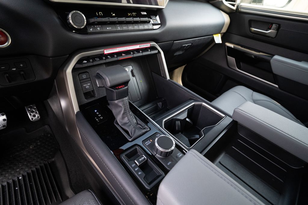 Power Package (120V Deck & Cabin Power Supply and Wireless Charger), Premium Package (High Grade Full LED Headlamp), TRD Off-Road Package (Front & Rear Mud Guards), 4WD, Boulder Trimmed Artificial Leather, 20" Alloy Wheels, 3.31 Axle Ratio, 4-Wheel Disc Brakes, 8-Way Pwr Adjustable Heated/Ventilated Front Seats, 9 Speakers, ABS brakes, Air Conditioning, All Weather Floor Liners (TMS), Alloy wheels, AM/FM radio: SiriusXM, Apple CarPlay/Android Auto, Auto High-beam Headlights, Auto-dimming door mirrors, Auto-dimming Rear-View mirror, Automatic temperature control, Brake assist, Bumpers: body-color, Delay-off headlights, Driver door bin, Driver vanity mirror, Dual front impact airbags, Dual front side impact airbags, Electronic Stability Control, Emergency communication system: Safety Connect (10-year trial), Exterior Parking Camera Rear, Folding Color-Keyed Outside Mirrors, Front anti-roll bar, Front Bucket Seats, Front Center Armrest, Front dual zone A/C, Front fog lights, Front reading lights, Front wheel independent suspension, Fully automatic headlights, Garage door transmitter: HomeLink, Heated door mirrors, Heated front seats, Heated Leather Steering Wheel, Illuminated entry, JBL Premium Audio, Knee airbag, Leather Shift Knob, Low tire pressure warning, Memory seat, Navigation System, Occupant sensing airbag, Outside temperature display, Overhead airbag, Overhead console, Panic alarm, Passenger door bin, Passenger vanity mirror, Power door mirrors, Power driver seat, Power passenger seat, Power steering, Power Tilt/Slide Panoramic Sunroof, Power windows, Radio data system, Radio: Audio Multimedia System, Rear reading lights, Rear seat center armrest, Rear step bumper, Rear window defroster, Remote keyless entry, Safety Connect, Security system, SofTex Seat Trim, Speed control, Speed-sensing steering, Split folding rear seat, Stainless Steel Door Edge Guards (TMS), Steering wheel mounted audio controls, Tachometer, Telescoping steering wheel, Tilt steering wheel, Traction control, Trip computer, Turn signal indicator mirrors, Variably intermittent wipers, Ventilated front seats, Voltmeter, and Wheel Locks (TMS)
