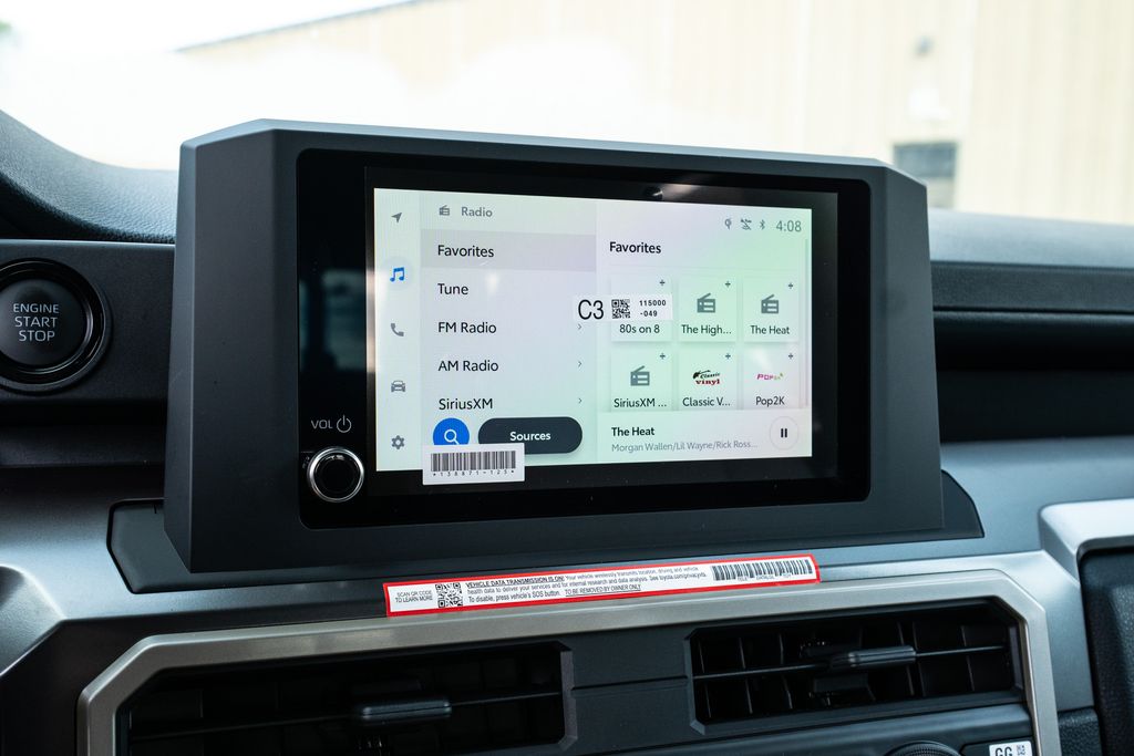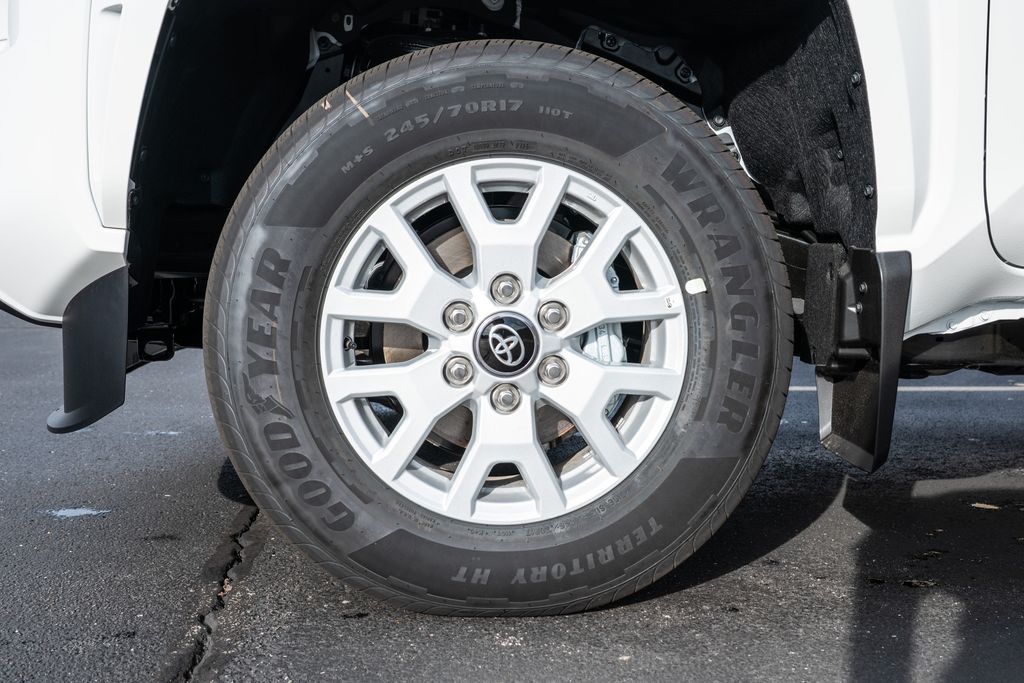 4WD, ABS brakes, Alloy wheels, Electronic Stability Control, Heated door mirrors, Illuminated entry, Low tire pressure warning, Remote keyless entry, Traction control, 3.583 Axle Ratio, 4-Wheel Disc Brakes, 6 Speakers, Air Conditioning, AM/FM radio: SiriusXM, Anti-whiplash front head restraints, Apple CarPlay/Android Auto, Auto High-beam Headlights, Auto-dimming Rear-View mirror, Brake assist, Bumpers: body-color, Driver door bin, Dual front impact airbags, Dual front side impact airbags, Emergency communication system: Safety Connect (1-year trial), Exterior Parking Camera Rear, Fabric Seat Trim, Four wheel independent suspension, Front anti-roll bar, Front Bucket Seats, Front Center Armrest, Front fog lights, Front reading lights, Fully automatic headlights, Knee airbag, Occupant sensing airbag, Outside temperature display, Overhead airbag, Overhead console, Panic alarm, Passenger door bin, Power door mirrors, Power steering, Power windows, Radio: 8" Toyota Audio Multimedia, Rear step bumper, Rear window defroster, Speed control, Speed-sensing steering, Split folding rear seat, Steering wheel mounted audio controls, Tachometer, Telescoping steering wheel, Tilt steering wheel, Trip computer, Variably intermittent wipers, and Wheels: 17" Styled Alloy.