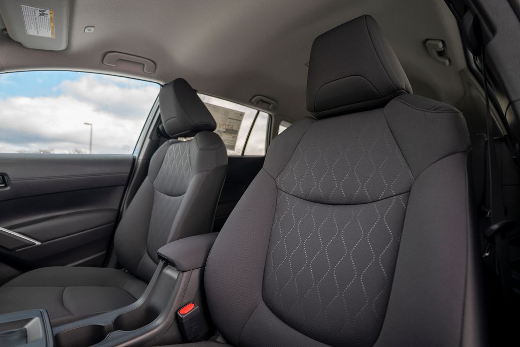 Cold Weather Package (3-Spoke Heated Leather Steering Wheel and Heated Front Seats), 4-Wheel Disc Brakes, 6 Speakers, ABS brakes, Air Conditioning, All Weather Floor/Cargo Liners, Alloy wheels, AM/FM radio: SiriusXM, Auto High-beam Headlights, Automatic temperature control, Brake assist, Bumpers: body-color, Cargo Cover, Delay-off headlights, Door Edge Guard, Driver door bin, Driver vanity mirror, Dual front impact airbags, Dual front side impact airbags, Electronic Stability Control, Emergency communication system: Safety Connect (10-year trial), Exterior Parking Camera Rear, Fabric Seat Trim, Four wheel independent suspension, Front anti-roll bar, Front Bucket Seats, Front Center Armrest, Front reading lights, Front Seats, Fully automatic headlights, Heated door mirrors, Illuminated entry, Knee airbag, Leather steering wheel, Low tire pressure warning, Occupant sensing airbag, Outside temperature display, Overhead airbag, Panic alarm, Passenger door bin, Passenger vanity mirror, Power door mirrors, Power steering, Power windows, Radio data system, Radio: 8" Toyota Audio Multimedia with 6 Speakers, Rear anti-roll bar, Rear side impact airbag, Rear window defroster, Rear window wiper, Remote keyless entry, Speed control, Split folding rear seat, Spoiler, Steering wheel mounted audio controls, Tachometer, Telescoping steering wheel, Tilt steering wheel, Traction control, Trip computer, Turn signal indicator mirrors, Variably intermittent wipers, and Wheels: 17" Silver-Painted Alloy.