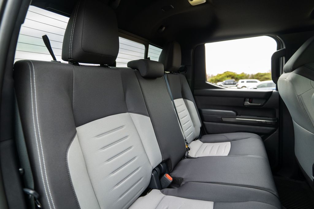 TRD Sport Upgrade Package (i-FORCE MAX) includes fabric-trimmed seats with heated 8-way power-adjustable front seats, leather-trimmed heated steering wheel, JBL Premium Audio with JBL FLEX portable speaker, Qi-compatible wireless charging, Front and Rear Parking Assist with Automatic Braking (PA w/AB), prewired auxiliary switches, Integrated Trailer Brake Controller (ITBC), Digital Key capability, and power horizontal rear window