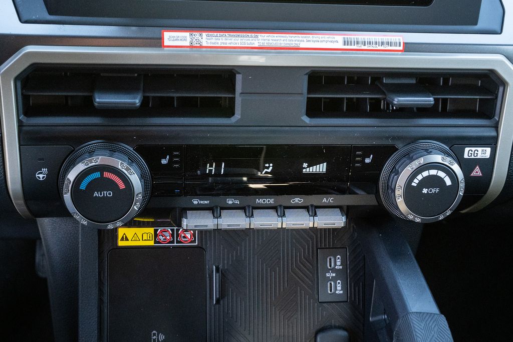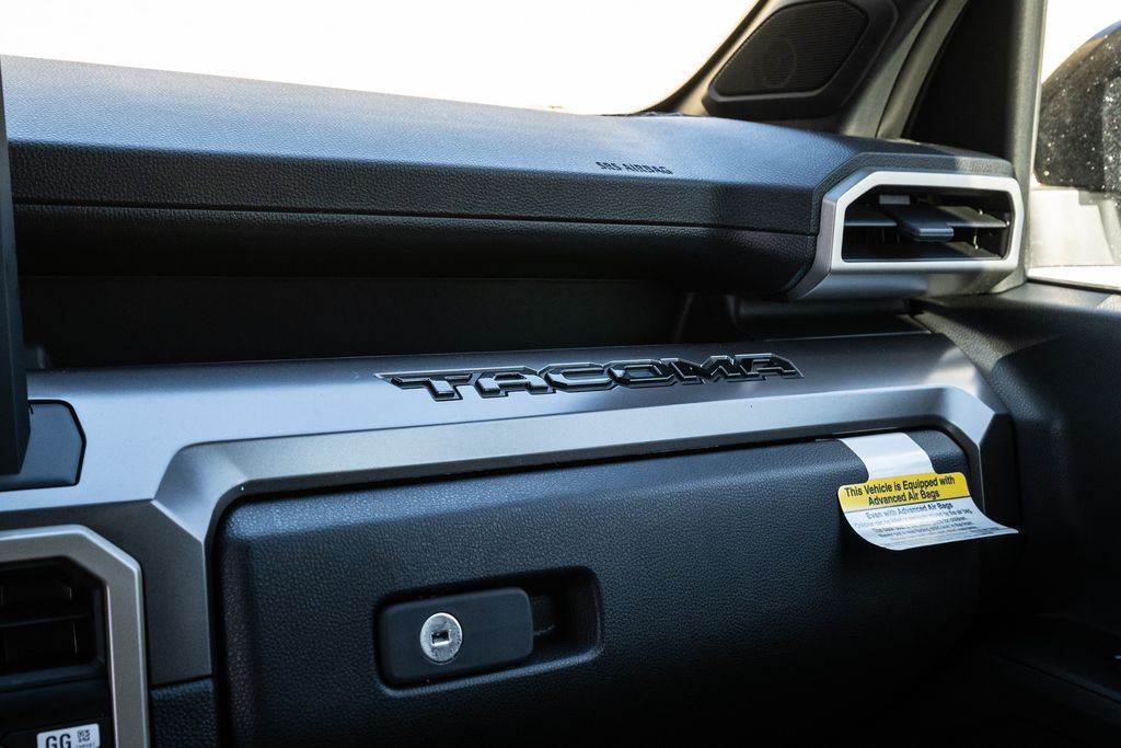 SR5 Upgrade Heat (JBL Premium Audio, Rear Underseat Storage Compartment, and TACOMA Stamped Easy Lower and Lift Tailgate), 4WD, 3.583 Axle Ratio, 4-Wheel Disc Brakes, 6 Speakers, ABS brakes, Air Conditioning, Alloy wheels, AM/FM radio: SiriusXM, Anti-whiplash front head restraints, Apple CarPlay/Android Auto, Auto High-beam Headlights, Auto-dimming Rear-View mirror, Bed Mat, Brake assist, Bumpers: body-color, Door Edge Guard, Driver door bin, Dual front impact airbags, Dual front side impact airbags, Electronic Stability Control, Emergency communication system: Safety Connect (up to 10-year trial subscription), Exterior Parking Camera Rear, Fabric Seat Trim, Four wheel independent suspension, Front anti-roll bar, Front Bucket Seats, Front Center Armrest, Front fog lights, Front reading lights, Fully automatic headlights, Heated door mirrors, Illuminated entry, Knee airbag, Low tire pressure warning, Mudguards, Occupant sensing airbag, Outside temperature display, Overhead airbag, Overhead console, Panic alarm, Passenger door bin, Power door mirrors, Power steering, Power windows, Radio: 8" Toyota Audio Multimedia, Rear step bumper, Rear window defroster, Remote keyless entry, Speed control, Speed-sensing steering, Split folding rear seat, Spray-on Bed Liner, Steering wheel mounted audio controls, Tachometer, Telescoping steering wheel, Tilt steering wheel, Traction control, Trip computer, Variably intermittent wipers, and Wheels: 17" Styled Alloy.