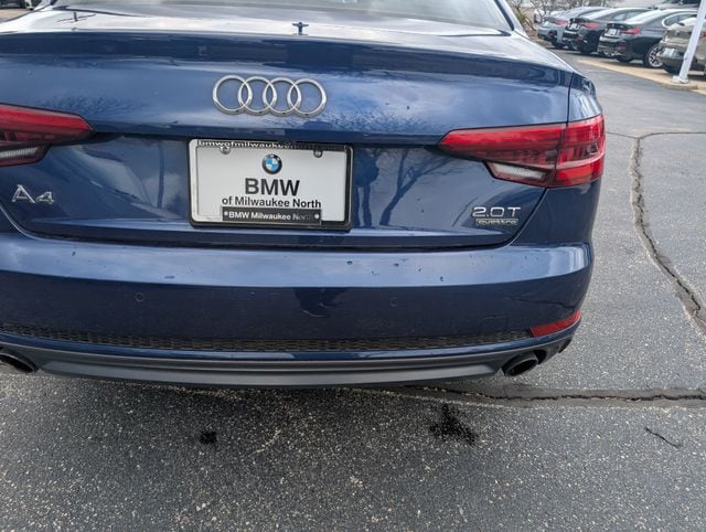 This 2017 Audi A4 Prestige represents the refined engineering and understated elegance that define the marque. Finished in Scuba Blue Metallic, a striking yet sophisticated hue that deepens with the light. At BMW of Milwaukee North, we curate our inventory with discerning drivers in mind, and this A4 exemplifies the quality and attention to detail our clientele expects. The driving experience in this A4 unfolds with the precision and responsiveness that Audi has long cultivated. The cabin, appointed in gray leather and complemented by contemporary trim work, creates an atmosphere of quiet confidence rather than overt luxury. The Prestige trim level brings together practical refinement—including a premium audio system, advanced climate control, and intuitive technology integration—all designed to support rather than distract from the genuine pleasure of driving. We invite you to experience firsthand the quality of this A4 and to explore what sets it apart. Contact BMW of Milwaukee North today to schedule a viewing at your convenience., A4 2.0T Prestige quattro, 4D Sedan, 2.0L I4 TFSI DOHC, 7-Speed Automatic S tronic, quattro, Scuba Blue Metallic, Rock Gray/Gray Leather, 8-Way Power Front Seats w/Driver Memory, Adaptive Cruise Control w/Traffic Jam Assist, Aluminum High-Gloss Window Surrounds, Anti-Theft Alarm System w/Immobilizer, Audi Active Lane Assist, Audi Advanced Key, Audi Connect CARE, Bang & Olufsen Sound System w/3D Sound, Black Cloth Headliner, Cold Weather Package, Convenience Package, Driver Assistance Package, Front Seat Ventilation, Full Color Head-Up Display, Full LED Headlights, Heated 3-Spoke Steering Wheel, Heated Auto-Dimming Power Exterior Mirrors w/Memory, Heated Front Seats, Heated Rear Seats, High-Beam Assistant, Interior Lighting Package, Manual Rear Side Window Sunshades, Parking System Plus, Prestige Package, SiriusXM Satellite Radio, Sport Front Seats, Sport Package, Sport Suspension, Technology Package, Top View Camera System, Traffic Sign Recognition, Warm Weather Package, Wheels: 8" x 18" 5-Spoke Dynamic Design.