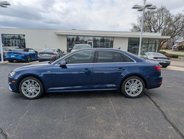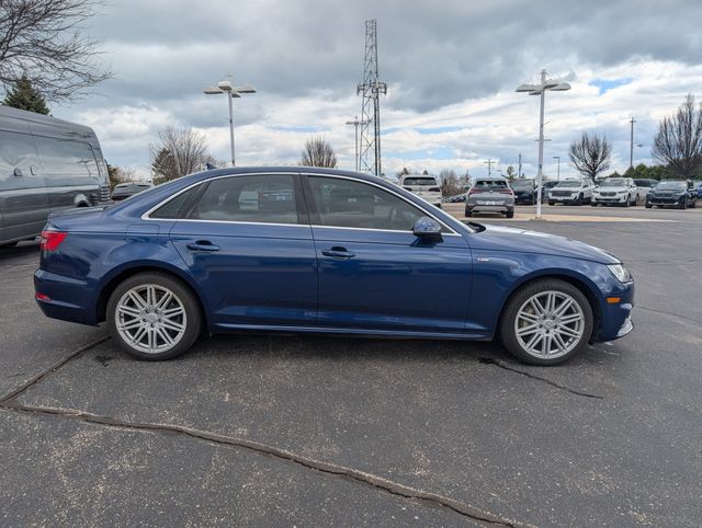 Cold Weather Package (Heated 3-Spoke Steering Wheel and Heated Rear Seats), Convenience Package (8-Way Power Front Seats w/Driver Memory, Anti-Theft Alarm System w/Immobilizer, Audi Advanced Key, Heated Auto-Dimming Power Exterior Mirrors w/Memory, and SiriusXM Satellite Radio), Driver Assistance Package (Adaptive Cruise Control w/Traffic Jam Assist, Audi Active Lane Assist, High-Beam Assistant, and Traffic Sign Recognition), Interior Lighting Package, Prestige Package (Aluminum High-Gloss Window Surrounds, Audi Connect CARE, Bang & Olufsen Sound System w/3D Sound, Full Color Head-Up Display, Full LED Headlights, Heated Front Seats, Parking System Plus, Top View Camera System, and Wheels: 8" x 18" 5-Spoke Dynamic Design), Sport Package (Black Cloth Headliner, Sport Front Seats, and Sport Suspension), Technology Package (Audi Connect PRIME & PLUS, Audi Pre Sense Rear, Audi Side Assist, Audi Virtual Cockpit, and Radio: Audi MMI Navigation Plus w/MMI Touch), Warm Weather Package (Front Seat Ventilation and Manual Rear Side Window Sunshades), 19" Wheel Package (Wheels: 8.5" x 19" Audi Sport 10-V-Spoke Design), A4 2.0T Prestige quattro, 4D Sedan, 2.0L I4 TFSI DOHC, 7-Speed Automatic S tronic, quattro, Scuba Blue Metallic, Rock Gray/Gray Leather, 10 Speakers, 4-Wheel Disc