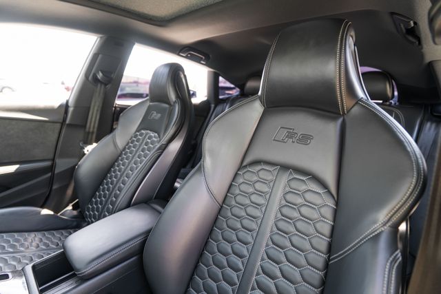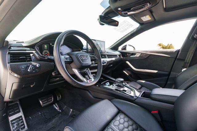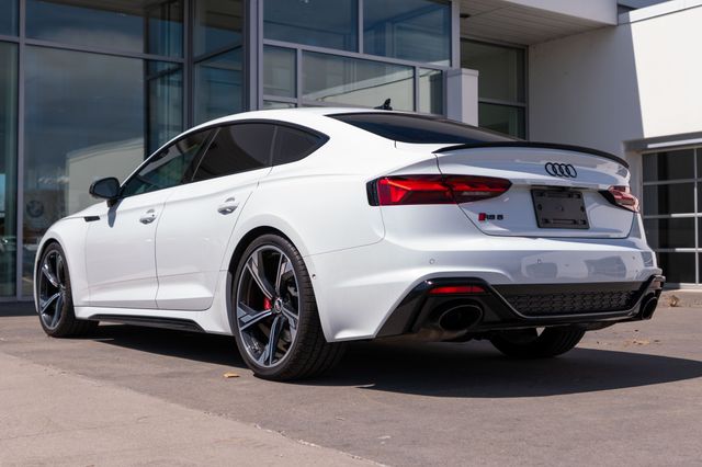 Black Optic Package (Exterior Mirror Housings in High-Gloss Black, Front Spoiler Trim in High-Gloss Black, High-Gloss Black Exterior Elements, Rear Diffuser Trim in High-Gloss Black, and Wheels: 20" 5-Arm-Flag Forged Design), Dynamic Package (Red Brake Calipers, RS Sport Exhaust System w/Black Tips, and RS Sport Suspension Plus w/Dynamic Ride Control), Navigation Package (Audi Connect PRIME & PLUS and MMI Navigation Plus), RS Driver Assistance Package (Adaptive Cruise Control w/Traffic Jam Assist, Audi Active Lane Assist, Hands-On Detection Steering Wheel, Head-Up Display, Park Assist, Top View Camera System, and Traffic Sign Recognition), Side Assist Package (Audi Pre-Sense Rear, Audi Side Assist, and Matte Alu Optic Exterior Mirror Housing), RS 5 2.9T quattro, 4D Hatchback, 2.9L V6 Turbocharged DOHC 24V LEV3-ULEV70 444hp, quattro, Glacier White, Black Leather, 19 Speakers, 4-Wh