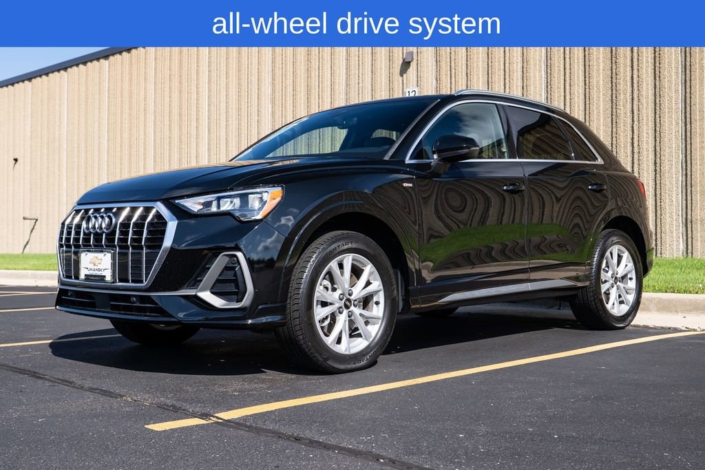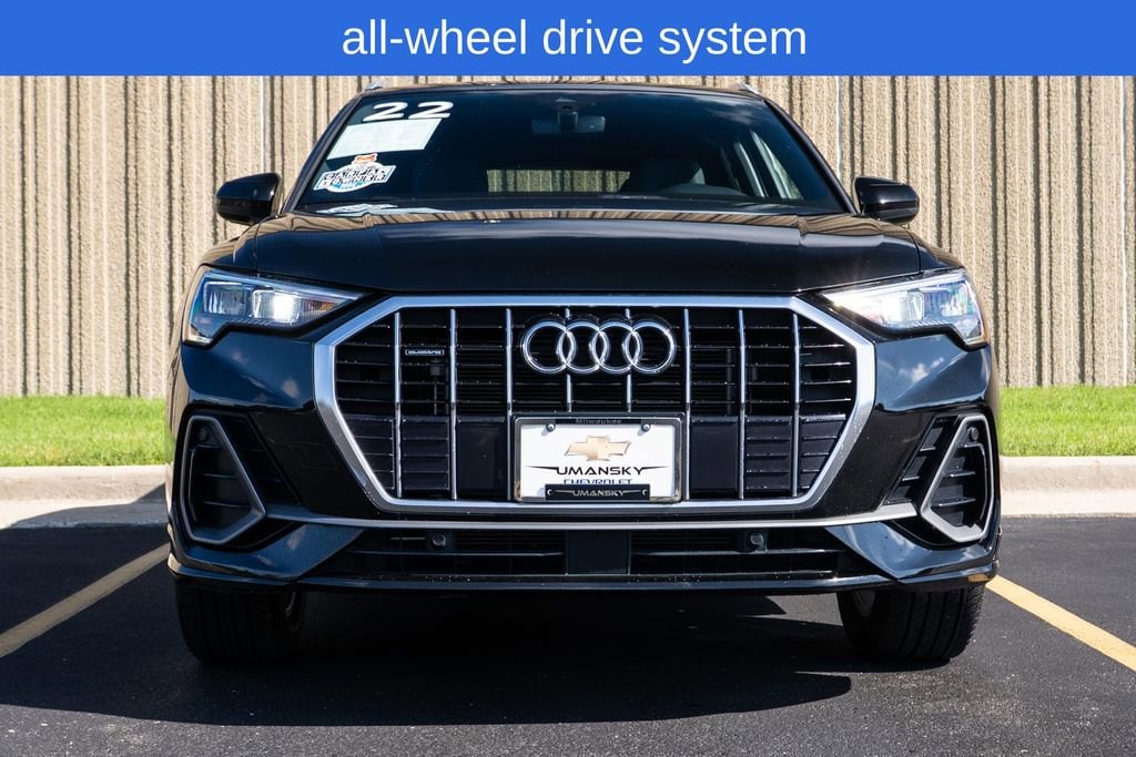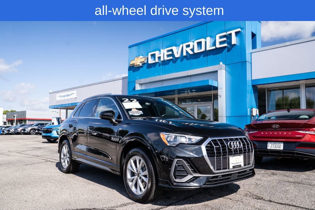 CARFAX One Owner, Includes 3 Month / 3000 Mile Warranty, Experience luxury, performance, and advanced technology in this sophisticated 2022 Audi Q3 Premium, featuring a sleek Black Metallic exterior and a refined Black interior, now available at Umansky Chevrolet in Milwaukee. This premium compact SUV blends elegant design with sporty handling, powered by a turbocharged engine and Audiâs legendary quattro® all-wheel drive system for superior control in any condition. Inside, you'll enjoy upscale amenities such as leather seating, a panoramic sunroof, Audi smartphone interface, and advanced safety features like Audi pre sense® front. Whether you're commuting in the city or cruising the highway, the 2022 Audi Q3 Premium delivers a dynamic driving experience. Visit Umansky Chevrolet Milwaukee today to test drive this luxurious and performance-driven SUV!, Panoramic sunroof, Lane Departure Warning (LDW), Bluetooth® with audio streaming, Alarm w/Motion Sensor, Alloy wheels, Audi Advanced Key, Convenience Package, Driver Memory, Frameless Auto-Dimming Interior Mirror w/Compass, Heated Power-Folding Exterior Mirrors, HomeLink Garage Door Opener, LED Interior Lighting Package, SiriusXM All Access Service, Wheels: 18 5-V-Spoke-S Design.
