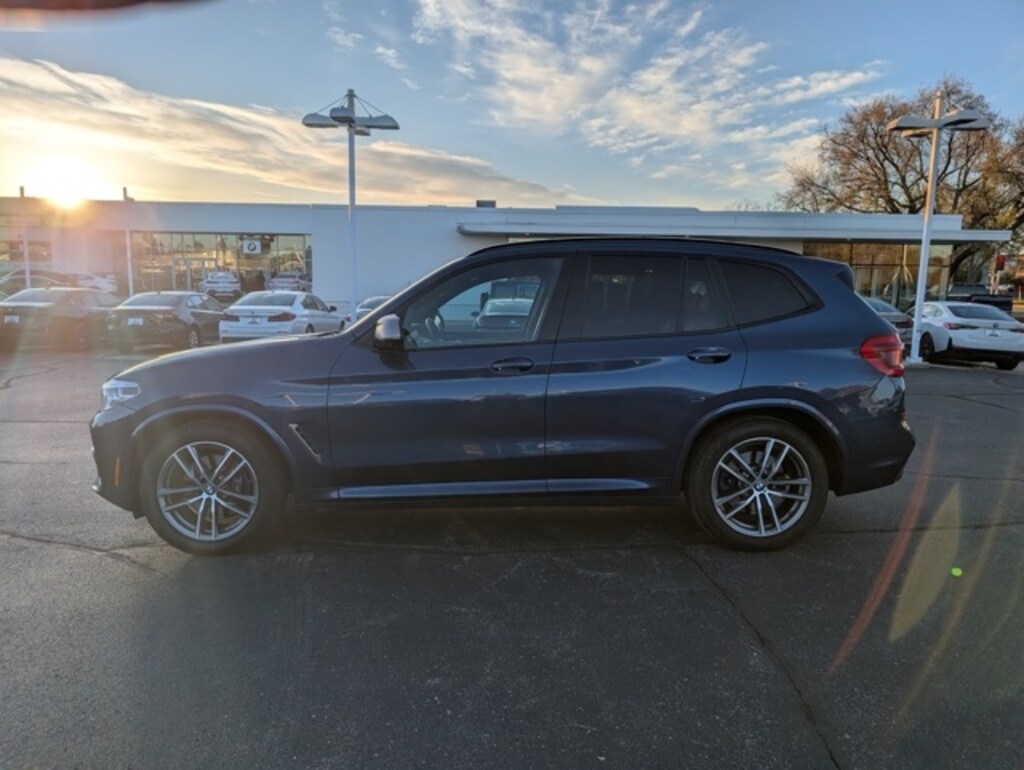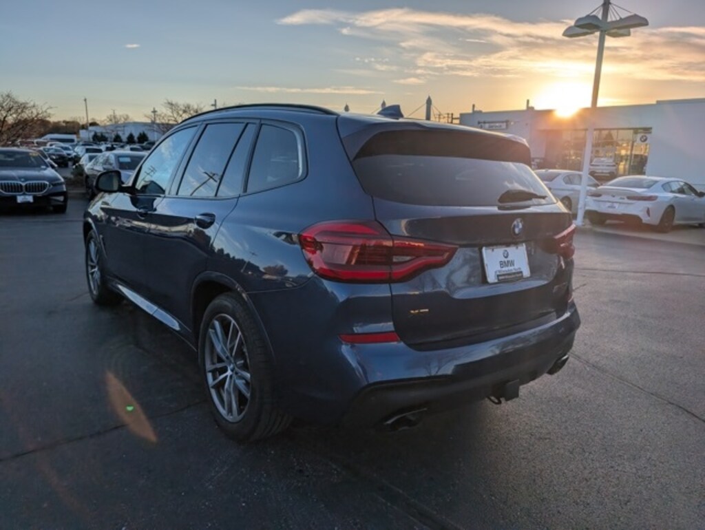 Driving Assistance Package (Active Blind Spot Detection, Active Driving Assistant, and Lane Departure Warning System), Driving Assistance Plus Package (ACC Stop & Go + Active Driving Assistant Plus), Executive Package (12.3" Dynamic Digital Instrument Cluster, Active Park Distance Control, Gesture Control, Parking Assistant Plus, Surround View w/3D View, and Vernasca Leather Upholstery), Premium Package (Head-Up Display, Heated Front Seats, Heated Steering Wheel, and Navigation System), X3 M40i, 4D Sport Utility, I6, 8-Speed Automatic, AWD, Phytonic Blue Metallic, 12 Speakers, 3.385 Axle Ratio, 4-Wheel Disc Brakes, ABS brakes, Air Conditioning, Alloy wheels, AM/FM radio: SiriusXM, Anti-Theft AM/FM Stereo CD/MP3 Player, Auto High-beam Headlights, Auto-dimming door mirrors, Auto-dimming Rear-View mirror, Automatic temperature control, Brake assist, Bumpers: body-color, CD player, Delay-off headlights, Driver door bin, Driver vanity mirror, Dual front impact airbags, Dual front side impact airbags, DVD Area Coding (North America), Electronic Stability Control, Emergency communication system: BMW Assist eCall, Exterior Parking Camera Rear, Four wheel independent suspension, Front anti-roll bar, Front Bucket Seats, Front Center Armrest, Front dual zone A/C, Front fog lights, Front reading lights, Fully automatic headlights, Garage door transmitter, Hands-Free Bluetooth & USB Audio Connection, Heated door mirrors, Hi-Fi Sound System, Illuminated entry, In-Dash CD Player, Knee airbag, Low tire pressure warning, Memory seat, Occupant sensing airbag, Outside temperature display, Overhead airbag, Panic alarm, Passenger door bin, Passenger vanity mirror, Power door mirrors, Power driver seat, Power Front Seats, Power Liftgate, Power moonroof, Power passenger seat, Power steering, Power windows, Radio Control US, Radio data system, Rain sensing wipers, Rear air conditioning, Rear anti-roll bar, Rear reading lights, Rear seat center armrest, Rear window defroster, Rear window wiper, Remote keyless entry, Roof rack: rails only, Security system, SensaTec Up