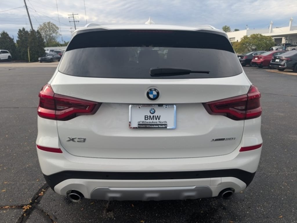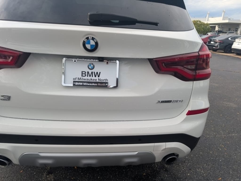 Connected Package Plus, Connected Package Pro, Wireless Charging (DISC) (Enhanced USB & Bluetooth (DISC)), X3 xDrive30i, 4D Sport Utility, 2.0L I4 TwinPower Turbo, 8-Speed Automatic Sport, AWD, Alpine White, Black Artificial Leather, 12 Speakers, 3.385 Axle Ratio, 4-Wheel Disc Brakes, ABS brakes, Active Park Distance Control, Air Conditioning, Alloy wheels, Aluminum Interior Trim, AM/FM radio: SiriusXM, Apple CarPlay & Android Auto Compatibility, Apple CarPlay Compatibility, Auto-dimming door mirrors, Auto-dimming Rear-View mirror, Automatic temperature control, BMW Assist eCall, BMW TeleServices, Brake assist, Bumpers: body-color, Comfort Access Keyless Entry, ConnectedDrive Services, Delay-off headlights, Driver door bin, Driver vanity mirror, Dual front impact airbags, Dual front side impact airbags, Electronic Stability Control, Emergency communication system: BMW Assist eCall, Exterior Parking Camera Rear, Four wheel independent suspension, Front anti-roll bar, Front Bucket Seats, Front Center Armrest, Front dual zone A/C, Front fog lights, Front reading lights, Fully automatic headlights, Garage door transmitter, Genuine wood dashboard insert, Genuine wood door panel insert, Head-Up Display, Heated door mirrors, Heated Front Seats, Heated Steering Wheel, Hi-Fi Sound System, Illuminated entry, Knee airbag, Live Cockpit Pro w/Navigation, Low tire pressure warning, Lumbar Support, Memory seat, Navigation, Navigation System, Occupant sensing airbag, Outside temperature display, Overhead airbag, Panic alarm, Panoramic Moonroof, Parking Assistant Plus, Passenger door bin, Passenger vanity mirror, Power door mirrors, Power driver seat, Power Front Seats, Power Liftgate, Power passenger seat, Power steering, Power windows, Radio Control US, Radio data system, Radio: AM/FM Stereo w/HD, Rain sensing wipers, Rear air conditioning, Rear anti-roll bar, Rear reading lights, Rear seat center armrest, Rear window defroster, Rear window wiper, Rear-View Camera, Remote keyless entry, Roof rack: rails only, Security system, SensaTec Upholstery, SiriusXM Satellite Radio, SiriusXM w/360L, Speed control, Speed-sensing steering, Speed-Sensitive Wipers, Split folding rear seat, Spoiler, Sport Bucket Seats, Sport steering wheel, Steering wheel mounted audio controls, Surround View w/3D View, Tachometer, Telescoping steering wheel, Tilt steering wheel, Traction control, Trip computer, Turn signal indicator mirrors, Variably intermittent wipers,
