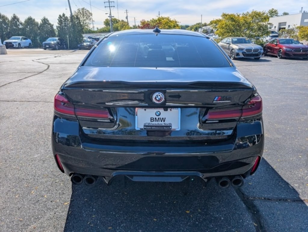 Unleash unmatched power and prestige with the 2023 BMW M5 Competition, now available at BMW of Milwaukee North in breathtaking Black Sapphire Metallic with a sleek black interior. This high-performance luxury sedan is fully loaded with every available carbon fiber optionâ"including a carbon fiber roof, interior trim, and exterior accentsâ"delivering aggressive styling and lightweight performance. Paired with the exhilarating M Titanium Exhaust System, the M5 Competition roars with a 617-horsepower TwinPower Turbo V8, making every Milwaukee drive an unforgettable experience. Donât miss your chance to own the ultimate driving machineâ"visit BMW of Milwaukee North to test drive the 2023 BMW M5 Competition today., M5 Competition, 4D Sedan, 4.4L V8 Turbocharged DOHC 32V LEV3-ULEV125 600hp, AWD, Black Sapphire Metallic, Black Leather, ABS brakes, Active Driving Assistant Pro, Active Park Distance Control, Alloy wheels, Competition Package, Competition Package (7MA), Connected Package Pro, Drive Recorder, Driving Assistance Professional Package, Electronic Stability Control, Executive Package, Extended Shadowline Trim, Extended Traffic Jam Assistant, Front & Rear Heated Seats, Front dual zone A/C, Front Massaging Seats, Front Ventilated Seats, Heated door mirrors, Heated Front Seats, Heated front seats, Illuminated entry, Low tire pressure warning, M Seat Belts, M Shadowline Lights, Navigation System, Parking Assistant Plus, Power Rear Sunshade & Rear Side Window Shades, Rear dual zone A/C, Rear-View Camera, Remote keyless entry, Soft-Close Automatic Doors, Surround View w/3D View, Traction control, Wheels: 20" x 9.5" Fr & 20" x 10.5" Rr M Y-Spoke.