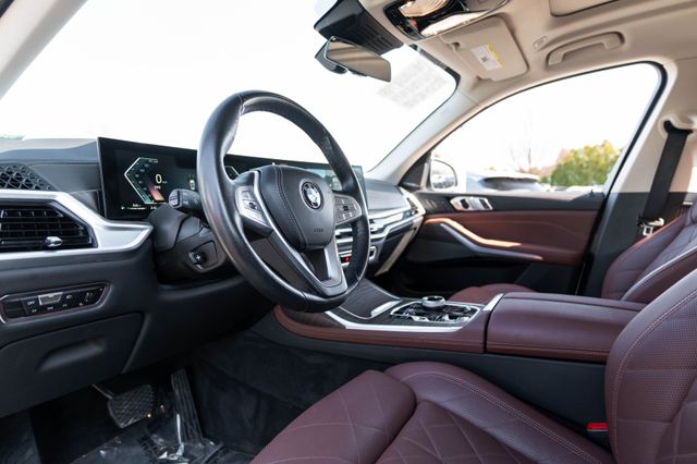Climate Comfort Package (5-Zone Automatic Climate Control, Front & Rear Heated Seats, and Front Ventilated Seats), Connected Package Pro, Driving Assistance Professional Package (Active Driving Assistant Pro), Executive Package (DISC) (Front Massaging Seats, Gesture Control, Glass Controls, harman/kardon Surround Sound System, Heated & Cooled Cup Holders, Panoramic Sky Lounge LED Roof, Rear Electric Side Window Shades, and Soft-Close Automatic Doors), Parking Assistance Package (Drive Recorder, Parking Assistant Professional, and Surround View w/3D View), X7 xDrive40i, 4D Sport Utility, 3.0L I6 DOHC 24V, AWD, Mineral White Metallic, Coffee Premium Synthetic, 10 Speakers, 3.64 Axle Ratio, 3rd row seats: split-bench, 4-Wheel Disc Brakes, ABS brakes, Adaptive suspension, Air Conditioning, Alloy wheels, Aluminum Running Boards, AM/FM radio: SiriusXM, AM/FM Stereo, Apple CarPlay & Android Auto Compatibility, Apple CarPlay Compatibility, Auto High-beam Headlights, Auto tilt-away steering wheel, Auto-dimming door mirrors, Auto-dimming Rear-View mirror, Auto-leveling suspension, Automatic temperature control, BMW Assist eCall, BMW TeleServices, Brake assist, Bumpers: body-color, Compass, ConnectedDrive Services, Delay-off headlights, Driver door bin, Driver vanity mirror, Dual front impact airbags, Dual front side impact airbags, Electronic Stability Control, Emergency communication system: BMW Assist eCall, Exterior Parking Camera Rear, Four wheel independent suspension, Front anti-roll bar, Front Bucket Seats, Front Center Armrest, Front dual zone A/C, Front reading lights, Fully automatic headlights, Garage door transmitter, Genuine wood console insert, Genuine wood dashboard insert, Genuine wood door panel insert, Head restrain
