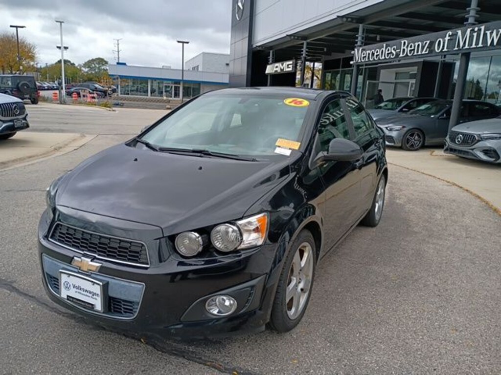 - Discover the stylish and efficient 2016 Chevrolet Sonic LTZ in Mosaic Black Metallic with a distinctive Jet Black/Brick leather interior available now at Volkswagen of Milwaukee North. This well-maintained compact sedan offers premium features with the LTZ Package including heated front seats a rearview camera Bluetooth connectivity and alloy wheelsâperfect for driving through Milwaukee Wisconsin in comfort and style. With its fuel-efficient engine sporty design and advanced tech the 2016 Sonic LTZ is an ideal choice for commuters students or anyone looking for a reliable used car. Visit Volkswagen of Milwaukee North today to test drive this standout Chevy Sonic and experience quality you can trust!