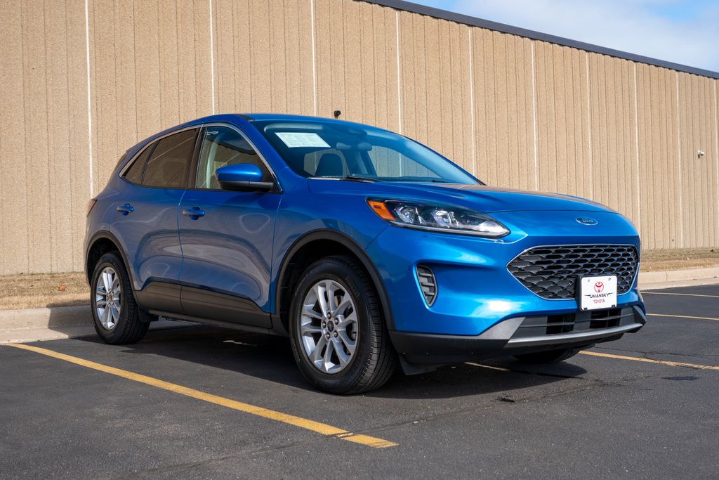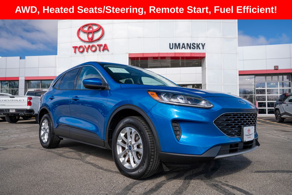 Includes 10 Year/150,000 Mile Warranty, Enjoy smart performance, modern technology, and everyday versatility with this 2021 Ford Escape SE, now available at Umansky Toyota Milwaukee. Finished in a bold Velocity Blue Metallic exterior with a refined Dark Earth Gray interior, this compact SUV offers a stylish design paired with efficient performance and a smooth, comfortable ride. The Escape SE features advanced safety technology, user-friendly infotainment, and a spacious interior with flexible cargo space, making it ideal for commuting, road trips, and daily driving around Milwaukee. If you’re searching for a dependable and feature-packed Ford Escape in Milwaukee, this one is ready to impress. Visit Umansky Toyota Milwaukee today to experience it firsthand., Heated and Premium Wrapped Steering Wheel, Remote Start System, Back-Up Camera, AWD, Alloy wheels, Cold Weather Package, Electronic Automatic Temperature Control (EATC), Equipment Group 200A, Heated & Premium Wrapped Steering Wheel, Heated Front Row Seats, Heated Sideview Mirrors, Remote Start System w/86C, SYNC 3 Communications & Entertainment System, Wheels: 17" Shadow Silver-Painted Aluminum.