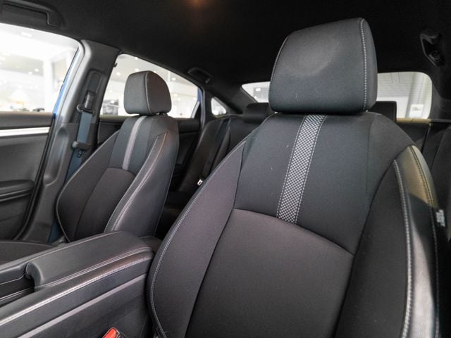 Black Cloth, Adaptive Cruise Control: Adaptive Cruise Control (ACC) with Low-Speed Follow, Apple CarPlay/Android Auto, Brake assist, Electronic Stability Control, Exterior Parking Camera Rear, Forward collision: Collision Mitigation Braking System (CMBS) + FCW mitigation, Lane departure: Lane Keeping Assist System (LKAS) active, 4-Wheel Disc Brakes, 8 Speakers, ABS brakes, Air Conditioning, Alloy wheels, AM/FM radio, Auto High-beam Headlights, Automatic temperature control, Bumpers: body-color, Cloth Seat Trim, Delay-off headlights, Driver door bin, Driver vanity mirror, Dual front impact airbags, Dual front side impact airbags, Emergency communication system: HondaLink, Four wheel independent suspension, Front anti-roll bar, Front Bucket Seats, Front Center Armrest, Front fog lights, Front reading lights, Fully automatic headlights, Illuminated entry, Leather Shift Knob, Low tire pressure warning, Occupant sensing airbag, Outside temperature display, Overhead airbag, Panic alarm, Passenger door bin, Passenger vanity mirror, Power door mirrors, Power steering, Power windows, Radio data system, Radio: 180-Watt AM/FM Audio System, Rear anti-roll bar, Rear window defroster, Remote Keyless Entry, Security system, Speed control, Speed-sensing steering, Split folding rear seat, Spoiler, Steering wheel mounted audio controls, Tachometer, Telescoping steering wheel, Tilt steering wheel, Traction control, Trip computer, and Wheels: 18" Alloy w/Gloss Black Inserts.