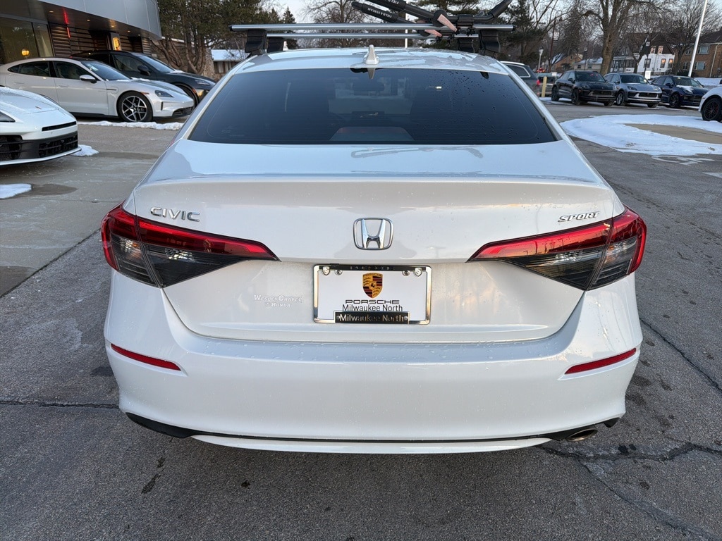 -Clean Carfax - One Owner, -Dealer Mantained, -Well Maintained, -New Tires, Discover sporty style and modern efficiency in this **2023 Honda Civic Sport**, offered by **Porsche Milwaukee North** in **Milwaukee, WI**. Finished in elegant **Platinum White** with a sleek **Black interior**, this Civic Sport blends eye-catching design with impressive fuel efficiency and agile performance. Its sporty exterior accents, advanced safety features, and well-appointed cabin make it an excellent choice for daily commuting or weekend cruising around Wisconsin. With its reliable engineering, responsive handling, and contemporary technology, this 2023 Honda Civic Sport delivers outstanding value for drivers seeking a stylish, fun-to-drive compact sedan in the Milwaukee area., Black Cloth, Apple CarPlay/Android Auto, Auto High-beam Headlights, Brake assist, Exterior Parking Camera Rear, Radio: 180-Watt Audio System w/8 Speakers, Remote keyless entry, Steering wheel mounted audio controls, Wheels: 18" Gloss Black Alloy.