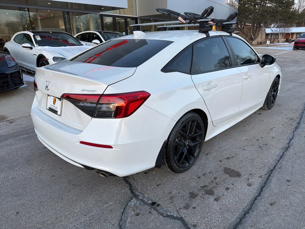 -Clean Carfax - One Owner, -Dealer Mantained, -Well Maintained, -New Tires, Discover sporty style and modern efficiency in this **2023 Honda Civic Sport**, offered by **Porsche Milwaukee North** in **Milwaukee, WI**. Finished in elegant **Platinum White** with a sleek **Black interior**, this Civic Sport blends eye-catching design with impressive fuel efficiency and agile performance. Its sporty exterior accents, advanced safety features, and well-appointed cabin make it an excellent choice for daily commuting or weekend cruising around Wisconsin. With its reliable engineering, responsive handling, and contemporary technology, this 2023 Honda Civic Sport delivers outstanding value for drivers seeking a stylish, fun-to-drive compact sedan in the Milwaukee area., Black Cloth, Apple CarPlay/Android Auto, Auto High-beam Headlights, Brake assist, Exterior Parking Camera Rear, Radio: 180-Watt Audio System w/8 Speakers, Remote keyless entry, Steering wheel mounted audio controls, Wheels: 18" Gloss Black Alloy.