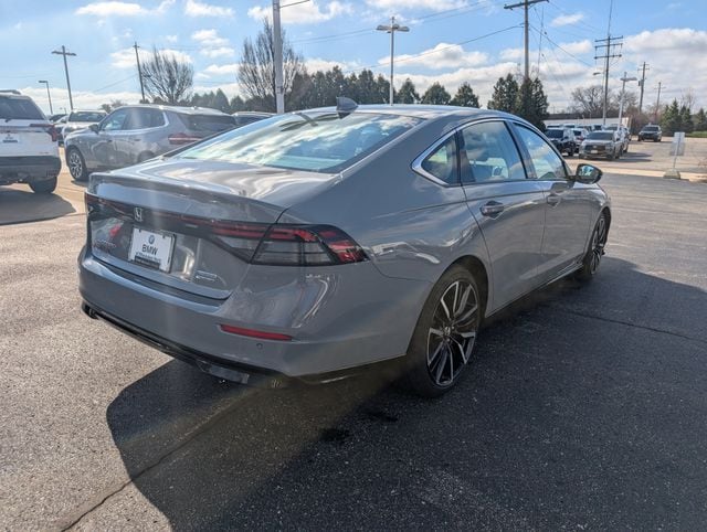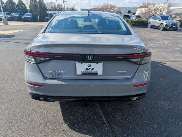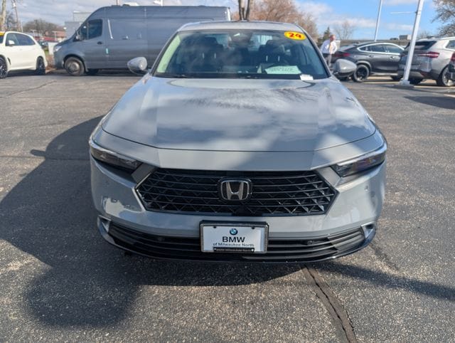 Includes 10 Year/150,000 Mile Warranty, Call us today to schedule your test drive at 414-312-4242, BMW of Milwaukee North is pleased to present a 2024 Honda Accord Hybrid Touring in Urban Gray Pearl. This sedan represents a thoughtful choice for those seeking refined transportation without compromise, finished in a sophisticated gray that conveys both elegance and practicality. The Accord Hybrid Touring delivers a balanced driving experience that prioritizes efficiency without sacrificing engagement. Behind the wheel, you'll find the cabin wrapped in black leather and appointed with modern technology including an intuitive infotainment system and a comprehensive suite of driver assistance features. The hybrid powertrain operates seamlessly between electric and gasoline power, allowing real-world fuel economy that makes financial sense over the vehicle's lifetime. Interior space is generous throughout, with seating for five and a trunk that accommodates both daily necessities and weekend excursions. We invite you to visit BMW of Milwaukee North to experience this vehicle firsthand and explore financing options tailored to your needs. Our team is prepared to address any questions and facilitate a purchase experience that reflects the quality of the automobile itself. Call us today to schedule your test drive at 414-312-4242, Accord Hybrid Touring, 4D Sedan, 2.0L 16V DOHC, Urban Gray Pearl, Black w/Leather-Trimmed Seat Trim.