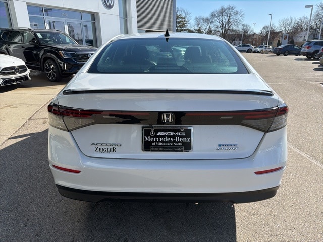 -120 Month or 150,000 Mile Limited Warranty, -Clean Carfax - One Owner, -Dealer Maintained, -Well Maintained, Discover impressive efficiency and modern sophistication with this **2025 Honda Accord Hybrid Sport** available at Mercedes-Benz of Milwaukee North in Milwaukee, WI. Finished in elegant **Platinum White Pearl** over a sleek **Black interior**, this stylish midsize sedan delivers a perfect balance of performance, comfort, and fuel-saving hybrid technology. Powered by Honda’s advanced two-motor hybrid system, the Accord Hybrid Sport provides responsive acceleration and outstanding MPG, making it ideal for commuting through Milwaukee or longer Wisconsin road trips. Its bold Sport styling cues, alloy wheels, and contemporary design give it a confident road presence, while the spacious cabin offers advanced connectivity, intuitive infotainment, and premium comfort features. If you’re searching for a fuel-efficient sedan in Milwaukee that combines reliability, innovative hybrid performance, and modern style, this 2025 Honda Accord Hybrid Sport is an exceptional choice at Mercedes-Benz of Milwaukee North., 2.0L I4 DOHC 16V, Adaptive Cruise Control: Adaptive Cruise Control (ACC) with Low-Speed Follow, Apple CarPlay/Android Auto, Blind Spot Information (BSI) System warning, Brake assist, Exterior Parking Camera Rear, Fully automatic headlights, Heated front seats, Lane departure: Lane Keeping Assist System (LKAS) active, Power moonroof, Radio: 180-Watt Audio System, Remote keyless entry, Wheels: 19" x 8.5J Berlina Black. Priced below KBB Fair Purchase Price!