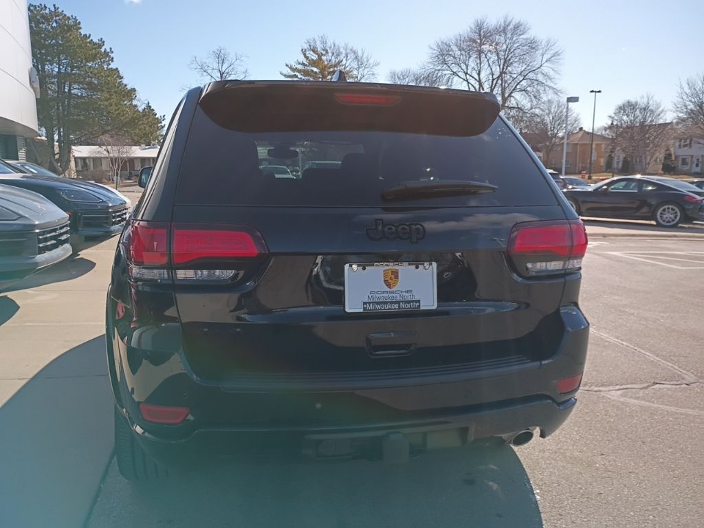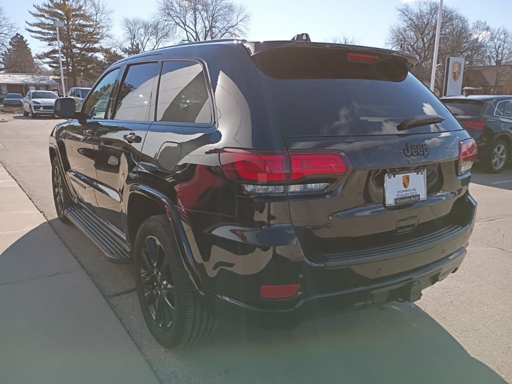 Altitude Appearance Package (Altitude Grille, Body Color Claddings, Body Color Fascia, Body Color Shark Fin Antenna, Dark Day Light Opening Moldings, Dark Headlamp Bezel Finish, Dark Lens Taillamps, Delete Laredo Badge, Front Accent/Body Color Fascia, Gloss Black Jeep Badging, Gloss Black Rear Fascia Applique, Hill Descent Control, Quadra-Trac II 4WD System, Rear Accent/Body Color Fascia, Rear Fascia Black Molded in Color Step Pad, Selec-Terrain System, Single Exhaust w/Bright Tip, and Wheels: 20" x 8.0" Gloss Black Aluminum), Quick Order Package 2GM Laredo X (DISC) (115V Auxiliary Power Outlet, Black Suede Seats w/Black Stitching, Heated Front Seats, Heated Steering Wheel, Power Liftgate, Remote Start System, Security Alarm, Steering Wheel Mounted Audio Controls, and Universal Garage Door Opener), Tech Group (506 Watt Amplifier, Active Noise Control System, Auto High Beam Headlamp Control, Bi-Xenon High-Intensity Discharge Headlamps, Front LED Fog Lamps, LED Daytime Running Headlamps, and Premium Alpine Speaker System), Trailer Tow Group IV (180 Amp Alternator, 7 & 4 Pin Wiring Harness, Class IV Receiver Hitch, Heavy-Duty Engine Cooling, and Rear Load Leveling Suspension), 3.45 Rear Axle Ratio, 4-Wheel Disc Brakes, 6 Speakers, ABS brakes, Air Conditioning, Alloy wheels, AM/FM radio: SiriusXM, Anti-whiplash front head restraints, Apple CarPlay/Android Auto, Auto-dimming Rear-View mirror, Automatic temperature control, Brake assist, Bumpers: body-color, Cloth Bucket Seats, Compass, Delay-off headlights, Driver door bin, Driver vanity mirror, Dual front impact airbags, Dual front side impact airbags, Electronic Stability Control, Emergency communication system: SiriusXM Guardian, Four wheel independent suspension, Front anti-roll bar, Front Bucket Seats, Front Center Armrest w/Storage, Front dual zone A/C, Front fog lights, Front reading lights, Fully automatic headlights, Heated door mirrors, Illuminated entry, Knee airbag, Leather Shift Knob, Low tire pressure warning, Navigation System, Normal Duty Suspension, Occupant sensing airbag, Outside temperature display, Overhead airbag, Overhead console, Panic alarm, ParkView Rear Back-Up Camera, Passenger door bin, Passenger vanity mirror, Power door mirrors, Power driver seat, Power steering, Power Sunroof, Power windows, Radio data system, Radio: Uconnect 4C Nav w/8.4" Display, Rear anti-roll bar, Rear reading lights, Rear seat center armrest, Rear window defroster, Rear window wiper, Remote keyless entry, Speed control, Speed-sensing steering, Speed-Sensitive Wipers, Split folding rear seat, Spoiler, Steering wheel mounted audio controls, Tachometer, Telescoping steering wheel, Tilt steering wheel, Traction control, Trip computer, Variably intermittent wipers, and Wheels: 18" x 8.0" Fine Silver Aluminum.