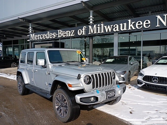 -120 Month or 150,000 Mile Limited Warranty, -Clean Carfax - One Owner, -Dealer Maintained, -Well Maintained, One Touch Sunroof, Experience premium open-air freedom with this **2022 Jeep Wrangler Sahara Unlimited High Altitude**, finished in stunning **Silver Zynith** with a refined **black leather interior**, now available at **Mercedes-Benz of Milwaukee North in Milwaukee, WI**. Equipped with the desirable **29N Customer Preferred Package**, this Wrangler High Altitude blends legendary Jeep capability with upscale features like body-color fender flares, premium wheels, advanced safety technology, and a luxurious interior feel. The **Cold Weather Package** adds heated front seats and a heated steering wheel for confident comfort through Wisconsin winters, while the sought-after **One-Touch Power Sunroof** delivers effortless open-air driving at the push of a button. With four-door versatility, iconic Wrangler styling, and a perfect balance of rugged performance and urban sophistication, this Jeep Wrangler Sahara Unlimited High Altitude is an exceptional choice for drivers seeking adventure with luxury—visit Mercedes-Benz of Milwaukee North today to make it yours., 2.0L I4 DOHC, 7 & 4 Pin Wiring Harness, 700 Amp Maintenance Free Battery, Apple CarPlay/Android Auto, Auxiliary Switches, Blind Spot & Cross Path Detection, Body Color 3-Piece Hard Top, Body Color Door Handles, Body Color Front Bumper, Body Color Grille w/Gloss Black Rings, Body Color Power Locking Fuel Filler Door, Body Color Rear Bumper w/Step Pads, Class II Receiver Hitch, Cold Weather Group, Exterior Mirrors w/Supplemental Signals, Heated Front Seats, Heated Steering Wheel, High Altitude Package, Leather Trimmed Bucket Seats, Power Top Quarter Window Storage Bag, Premium Dark Exterior Accents, Quick Order Package 29N High Altitude, Radio: Uconnect 4C Nav w/8.4" Display, Remote Start System, Removable Rear Quarter Windows, Safety Group, Sky 1-Touch Power Top, Summit Badging, Trailer Tow & HD Electrical Group, Wheels: 20" x 8.0" Fully Painted Aluminum, Wrapped I/P Bezel w/Caramel Stitch. Odometer is 1119 miles below market average!