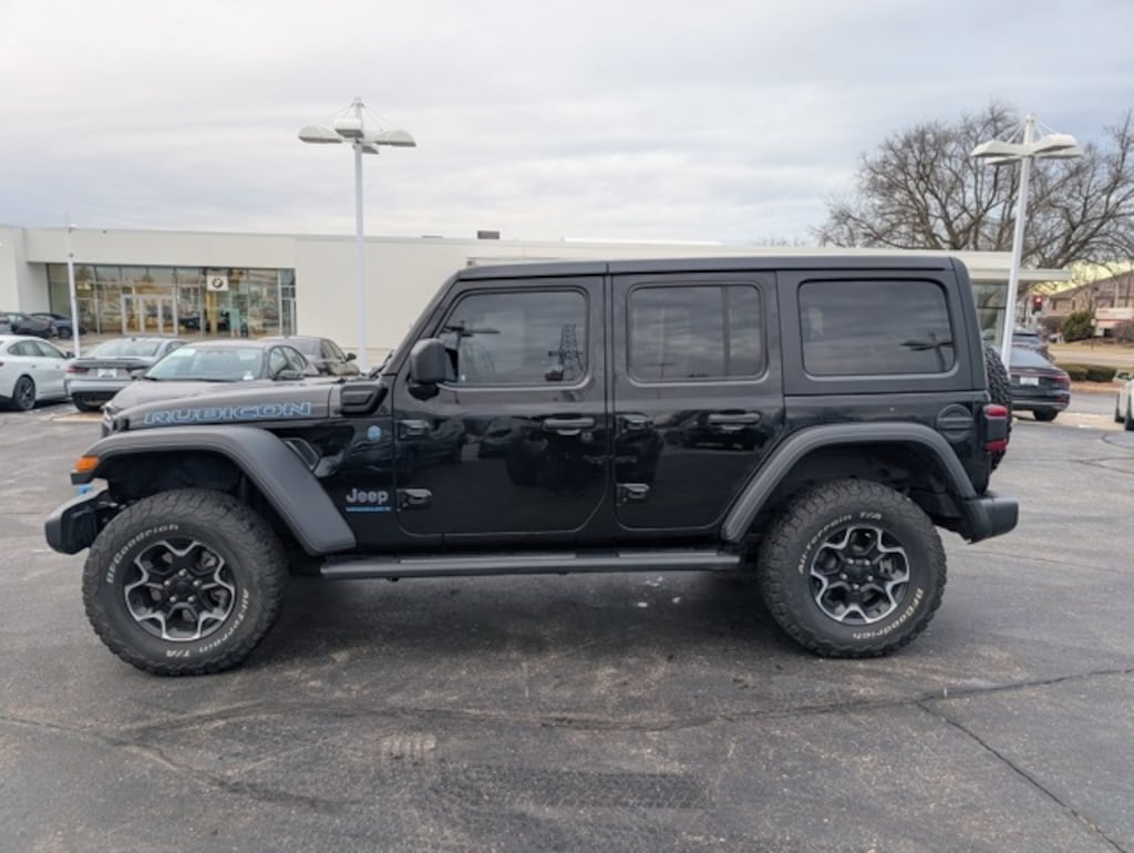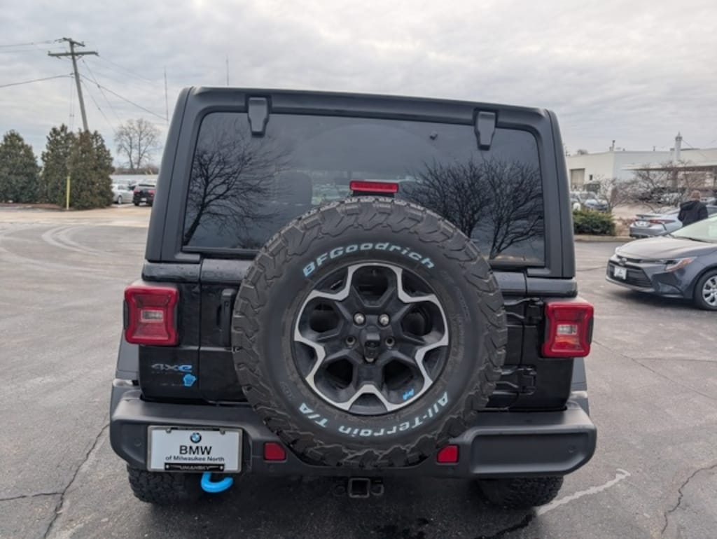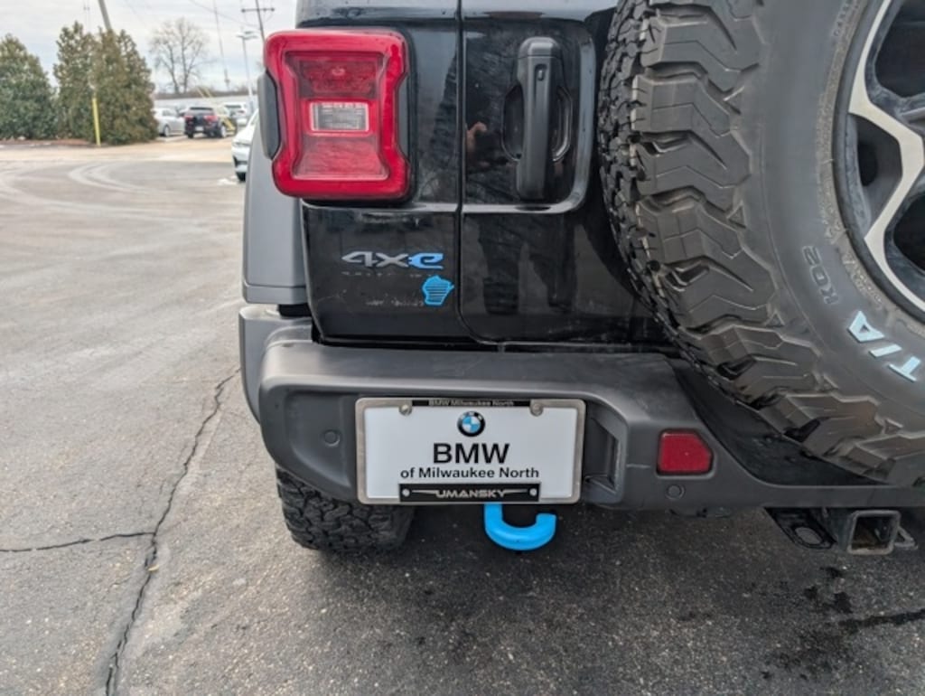 Discover adventure-ready efficiency with this 2023 Jeep Wrangler Rubicon 4xe Hybrid in black exterior with a black interior, now available at BMW of Milwaukee North in Milwaukee, Wisconsin. This plug-in hybrid Wrangler combines legendary Rubicon 4x4 off-road capability with innovative electric power, delivering impressive performance, instant torque, and improved fuel efficiency for both city driving and Wisconsin backroads. Featuring rugged Jeep styling, advanced hybrid technology, and a refined yet durable interior, the Wrangler Rubicon 4xe is perfect for drivers who want eco-conscious performance without sacrificing trail-rated capability. Visit BMW of Milwaukee North today to experience this versatile and powerful hybrid SUV for yourself., Wrangler Rubicon 4xe, 4D Sport Utility, 2.0L I4 DOHC, 4WD, Black Clearcoat, ABS brakes, Alloy wheels, Blind Spot & Cross Path Detection, Cold Weather Group, Compass, Electronic Stability Control, Front dual zone A/C, Heated door mirrors, Heated Front Seats, Heated Steering Wheel, Illuminated entry, Low tire pressure warning, Navigation System, ParkSense Rear Park Assist System, ParkView Rear Back-Up Camera, Passenger door bin, Remote keyless entry, Remote Start System, Safety Group, Traction control. Priced below KBB Fair Purchase Price!