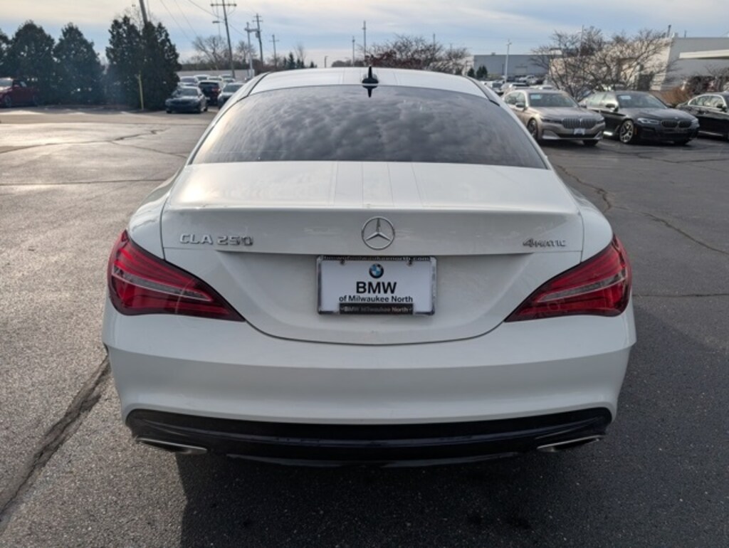 - Discover exceptional style and performance with this 2018 Mercedes-Benz CLA 250 4MATIC in stunning white exterior paired with a sleek black interior now available at BMW of Milwaukee North. This luxury compact sedan delivers turbocharged power confident all-wheel-drive handling and a head-turning coupe-inspired design perfect for Milwaukee drivers seeking sophistication and reliability. Inside youâll enjoy premium comfort advanced tech features and the refined craftsmanship Mercedes-Benz is known for. Whether youâre commuting through Milwaukee or cruising the Wisconsin highways this CLA 250 4MATIC offers a dynamic and fuel-efficient driving experience. Explore this well-maintained high-value luxury vehicle today at BMW of Milwaukee North.